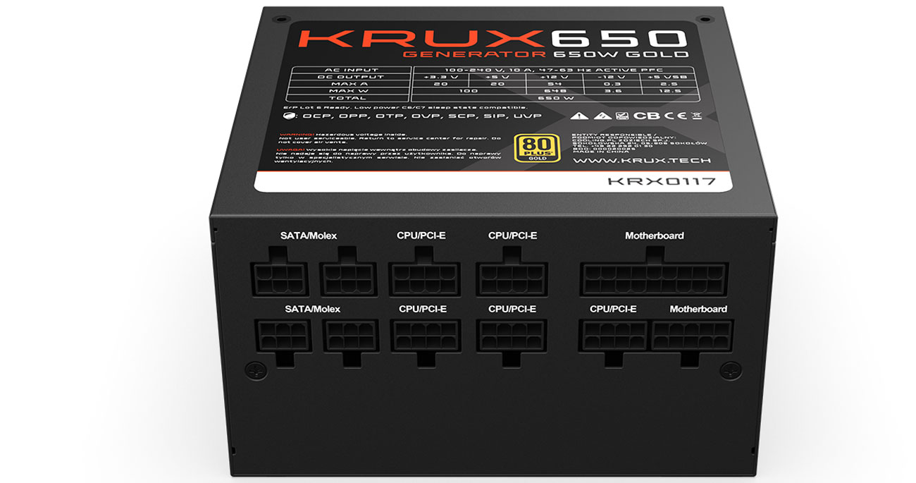 Das KRUX Generator 650W Netzteil gewährleistet das höchste Niveau an Sicherheit für deinen PC. Dank einer Reihe von Technologien zum Schutz der angeschlossenen Komponenten kannst du Konfiguration unbesorgt nutzen. Das Netzgerät ist mit folgenden Schutzvorrichtungen ausgestattet: