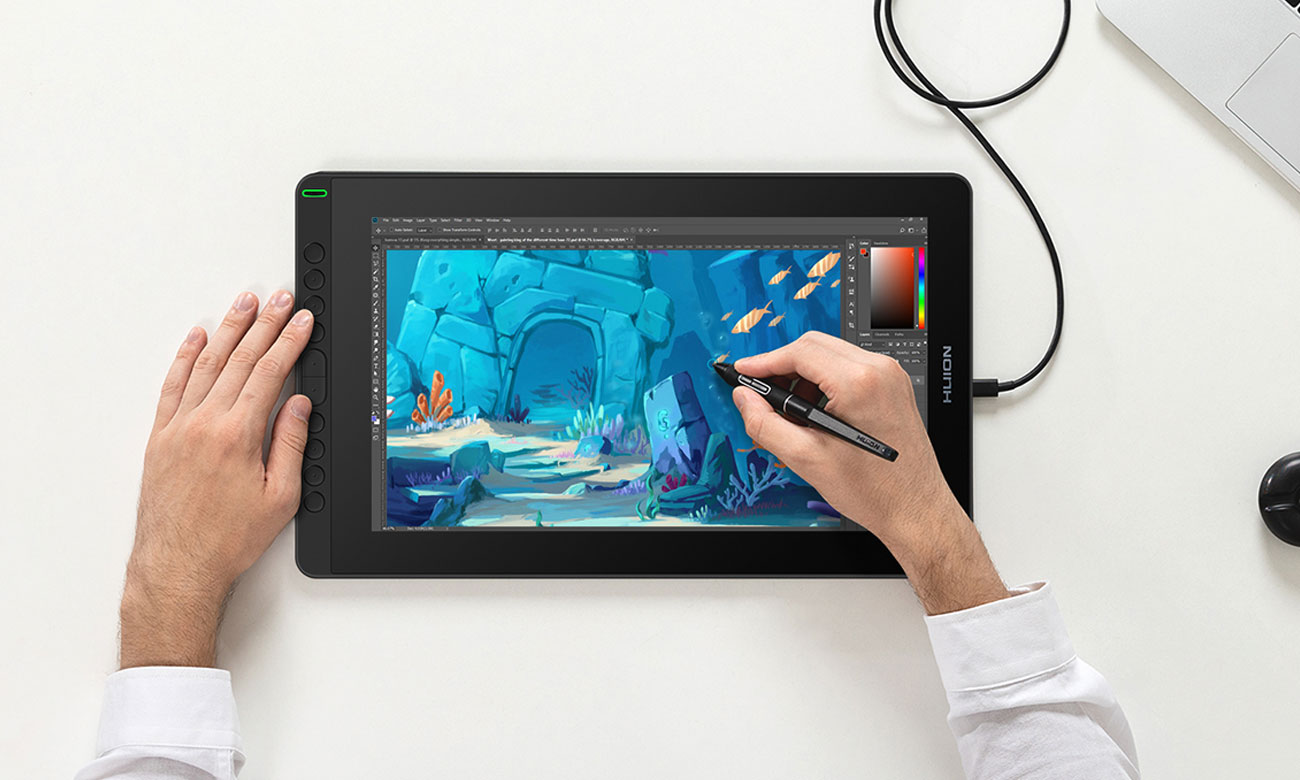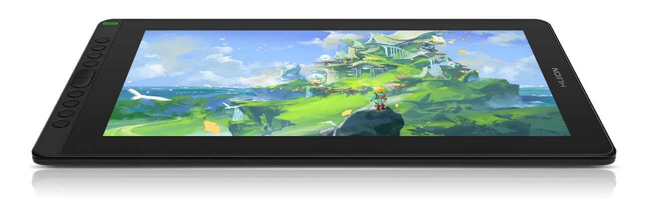 Das schwarze Huion Kamvas RDS-160 hat einen IPS-Bildschirm, der mit entspiegeltem Glas vollständig laminiert ist. Dies soll die Lücke zwischen Cursor und Stiftspitze eliminieren. Es wird deine Genauigkeit bei der Arbeit definitiv verbessern und die Parallaxe minimieren. Entspiegeltes Glas bedeutet auch eine Reduzierung von Reflexionen und eine Erhöhung der Reibung zwischen Stift und Bildschirm. Alles, um dir das Gefühl zu geben, als würdest du mit einem Stift auf Papier arbeiten.
