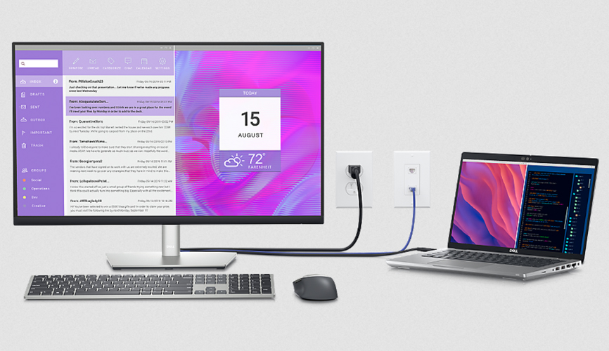 Drücken Sie einfach die Ein-/Ausschalttaste am Monitor und die Power-Sync-Funktion startet den Monitor sowie den angeschlossenen Dell PC nahtlos, selbst wenn die Laptopabdeckung geschlossen ist.