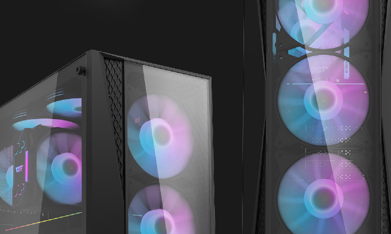 Das Gehäuse verfügt über ein transparentes Seitenteil aus gehärtetem Glas. Dies ermöglicht eine perfekte Integration von Komponenten mit Beleuchtung - auch von den im Lieferumfang enthaltenen Lüftern. Setzen Sie auf die Kombination aus Funktionalität und visuellen Reizen, um Ihre Traumkonfiguration zu erstellen.