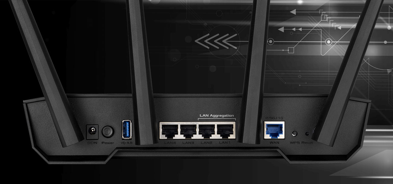 Der Gaming-Router TUF Gaming AX3000 V2 wurde entwickelt, um stabile und schnelle drahtlose und kabelgebundene Verbindungen in Netzwerken mit vielen verbundenen Geräten zu gewährleisten. Es ist ein Router, der allen deinen Geräten Vorteile bietet: von Laptops, Smartphones und Spielkonsolen bis hin zu allen IoT-Geräten in deinem Zuhause. Der Router kann dabei die Bandbreite für kabelgebundene Verbindungen auf 2 Gb/s über den 2,5 Gb/s-Port bereitstellen und ermöglicht die Aggregation von zwei separaten 1 Gb/s-Internetverbindungen (von verschiedenen ISPs) über die LAN1- und LAN2-Ports.