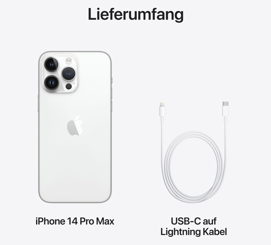 Das iPhone 14 Pro Max. Nimm mit der 48 MP Hauptkamera unglaubliche Details auf. Mit der Dynamic Island und dem Always-On Display erlebst du das iPhone aufganz neue Art. Und die Unfallerkennung1, ein neues Sicherheitsfeature, ruft Hilfe, wenn du es nicht kannst. 1Notruf SOS erfordert eine Mobilfunkverbindung oder Anrufe über WLAN. 2Das Display hat gerundete Ecken. Als Rechteck gemessen hat das Display eine Diagonale von 6,69" (17 cm). Der tatsächlich sichtbare Displaybereich ist kleiner. 3Die Batterielaufzeit variiert abhängig von Verwendung und Konfiguration. Weitere Infos unter apple.com/de/batteries. 4Datentarif erforderlich. 5G ist in ausgewählten Ländern und über ausgewählte Anbieter verfügbar. Die Geschwindigkeit kann je nach Standort und Anbieter variieren. Nähere Informationen zur 5G Unterstützung gibt es beim jeweiligen Mobilfunkanbieter und auf apple.com/de/iphone/cellular. 5Das iPhone 14 Pro Max ist vor Wasser und Staub geschützt und wurde unter kontrollierten Laborbedingungen getestet. Es ist nach IEC Norm 60529 unter IP68 klassifiziert (bis zu 6 Meter für bis zu 30 Minuten). Der Schutz vor Wasser und Staub ist nicht dauerhaft und kann mit der Zeit als Resultat von normaler Abnutzung geringer werden. Ein nasses iPhone darf nicht geladen werden. Im Benutzerhandbuch befindet sich eine Anleitung zum Reinigen und Trocknen. Die Garantie deckt keine Schäden durch Flüssigkeitenab. 6Einige Features sind u.U. nicht in allen Ländern oder Regionen verfügbar.