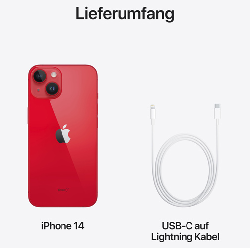 2Das Display hat gerundete Ecken. Als Standard-Rechteck gemessen hat das Display eine Diagonale von 6,06" (15,40 cm). Der tatsächlich sichtbare Displaybereich ist kleiner. 3Die Batterielaufzeit variiert abhängig von Verwendung und Konfiguration. Weitere Infos unterapple.com/de/batteries. 4Datentarif erforderlich. 5G ist in ausgewählten Ländern und über ausgewählte Anbieter verfügbar. Die Geschwindigkeit kann je nach Standort und Anbieter variieren. Nähere Informationen zur 5G Unterstützung gibt es beim jeweiligen Mobilfunkanbieter und auf apple.com/de/iphone/cellular. 5Das iPhone 14 ist vor Wasser und Staub geschützt und wurde unter kontrollierten Laborbedingungen getestet. Es ist nach IEC Norm 60529 unter IP68 klassifiziert (bis zu 6 Meter für bis zu 30 Minuten). Der Schutz vor Wasser und Staub ist nicht dauerhaft und kann mit der Zeit als Resultat von normaler Abnutzung geringer werden. Ein nasses iPhone darf nicht geladen werden. Im Benutzerhandbuch befindet sich eine Anleitung zum Reinigen und Trocknen. Die Garantie deckt keine Schäden durch Flüssigkeitenab. 6Einige Features sind u.U. nicht in allen Ländern oder Regionen verfügbar.