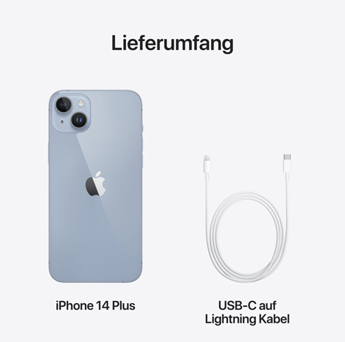 5Das iPhone 14 Plus ist vor Wasser und Staub geschützt und wurde unter kontrollierten Laborbedingungen getestet. Es ist nach IEC Norm 60529 unter IP68 klassifiziert (bis zu 6 Meter für bis zu 30 Minuten). Der Schutz vor Wasser und Staub ist nicht dauerhaft und kann mit der Zeit als Resultat von normaler Abnutzung geringer werden. Ein nasses iPhone darf nicht geladen werden. Im Benutzerhandbuch befindet sich eine Anleitung zum Reinigen und Trocknen. Die Garantie deckt keine Schäden durch Flüssigkeitenab.
