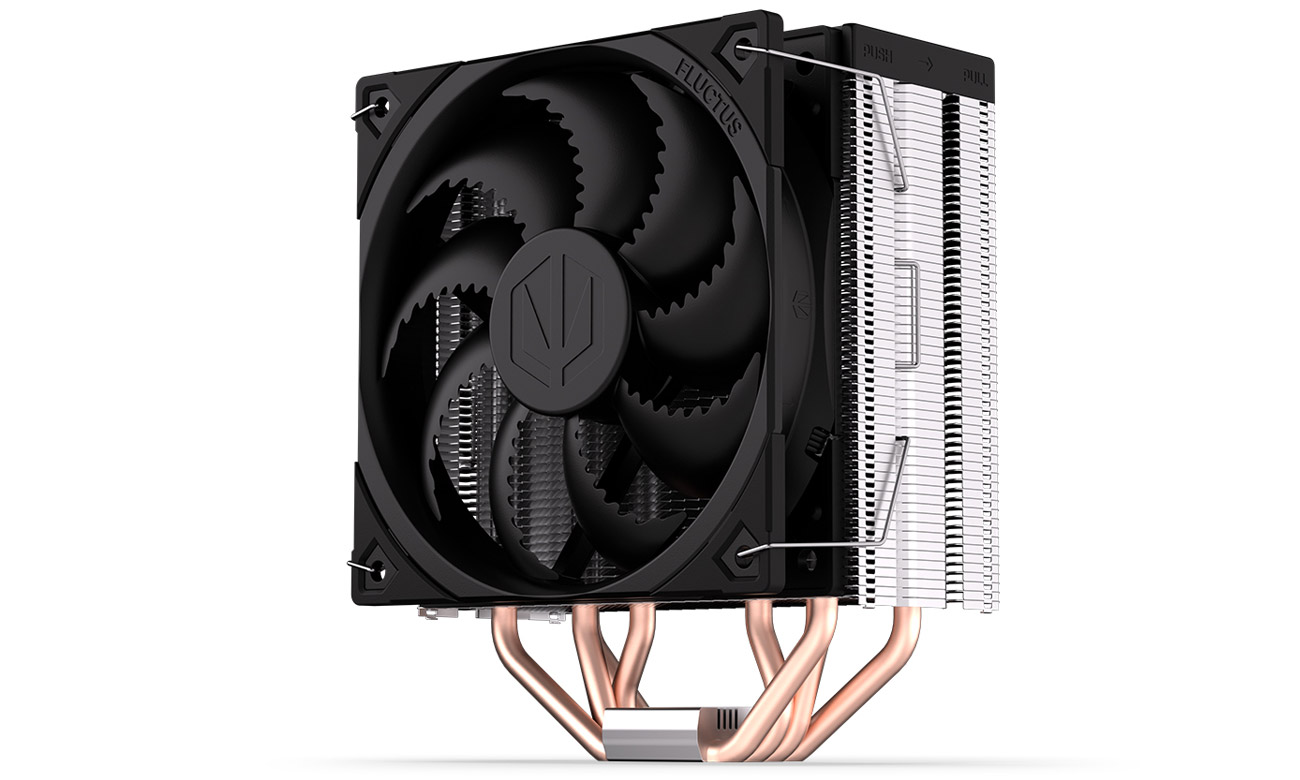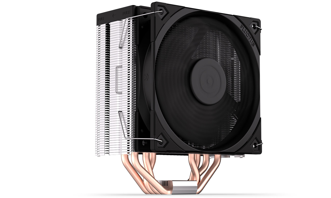 Das ENDORFY Fera 5 ist mit einem Fluctus 120 PWM-Lüfter ausgestattet. Er arbeitet leise und verfügt über einen optionalen Semi-Passiv-Modus. Seine Flügel wurden so geformt, dass sie einen besseren Luftstrom ermöglichen. Der Kühler hat auch dicht angeordnete Kühlrippen am asymmetrischen Kühlkörper, was die Wärmeableitung effektiv macht. Die Basis des Geräts berührt den Prozessor, und vier Heatpipes verbessern die Wärmeabfuhr. Fera 5 ist für den unidirektionalen Luftstrom optimiert.