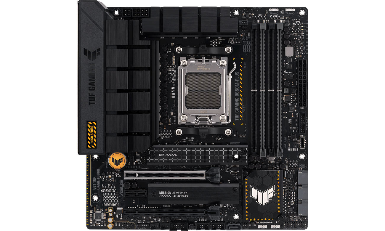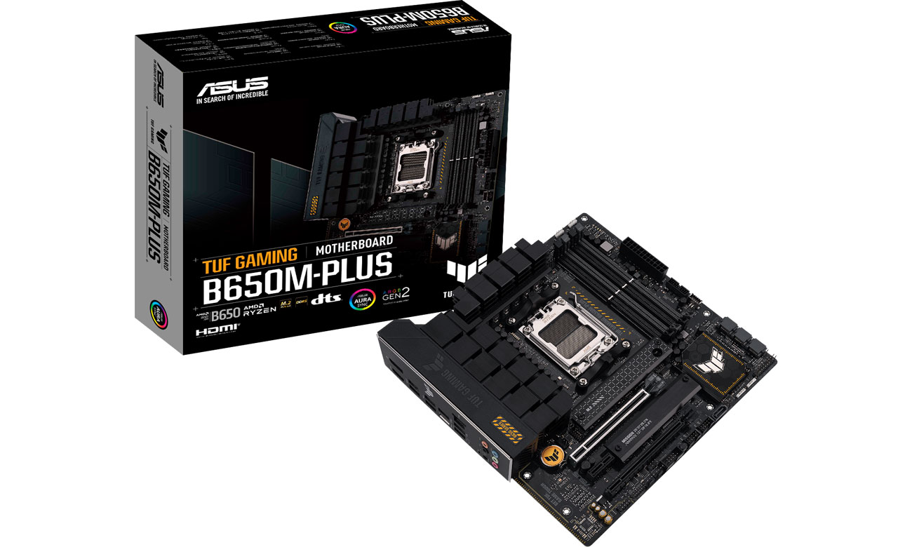 Das Mainboard ASUS TUF GAMING B650M-PLUS kombiniert die Unterstützung für AMD Ryzen 7000 Prozessoren mit Funktionen für Gamer und bewährter Zuverlässigkeit. Entworfen mit Militärstandard-Komponenten, einem optimierten Design der Stromversorgungssektion und einem umfassenden Kühlsystem, übertrifft es deine Erwartungen. Rigorose Tests garantieren, dass das TUF GAMING B650M-PLUS Mainboard eine solide Basis bietet, die stabile Leistung liefert. All dies ist in einem kompakten microATX-Format verpackt, das geometrische Designelemente charakteristisch für die TUF GAMING Serie enthält. ARGB-Anschlüsse erlauben zudem die Erweiterung der Konfiguration um LED-Beleuchtung.