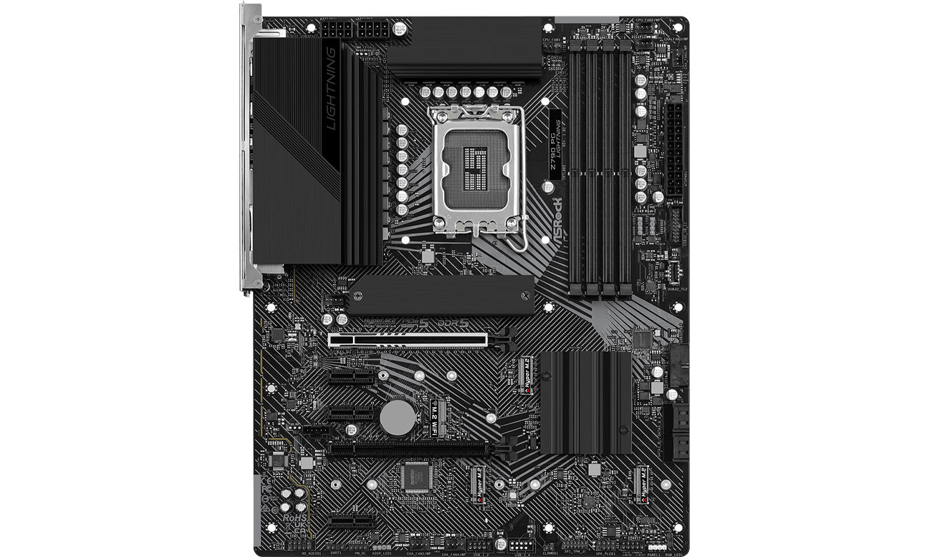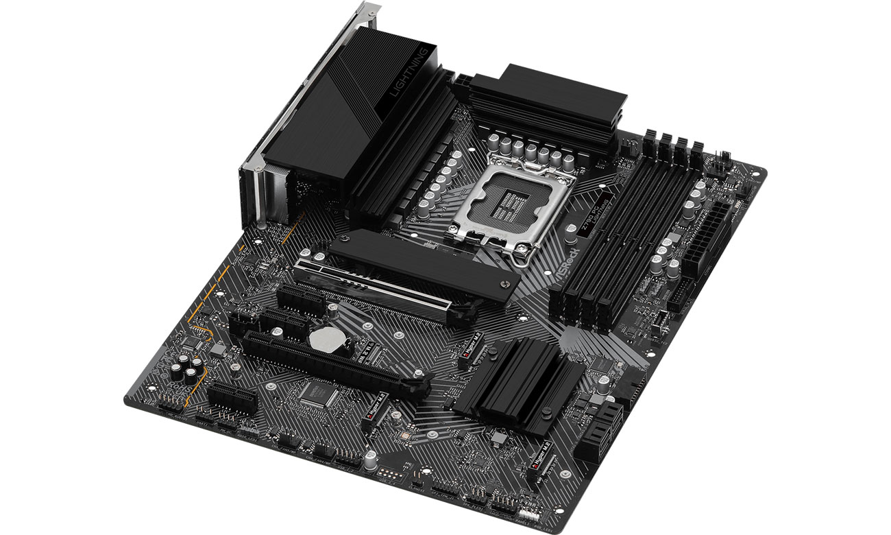 Um sicherzustellen, dass die Mehrkern-Intel-Prozessoren auch nach dem Übertakten stabil laufen, ist das Z790 PG Lightning mit einer 14+1+1 Phasen Stromversorgungssektion mit 50 A Dr.MOS ausgestattet. Massive Kühlkörper sorgen dafür, dass die Platine auch unter hoher Belastung stabile Spannungspegel bietet. Eine zusätzliche thermische Abdeckung befindet sich auch über einem der M.2-Slots. Zahlreiche Anschlüsse für Lüfter, die auch mit einer Wasserpumpenkühlung kompatibel sind, ermöglichen ein fortgeschrittenes Management der Kühlung des gesamten Gehäuses über die dedizierte Software.