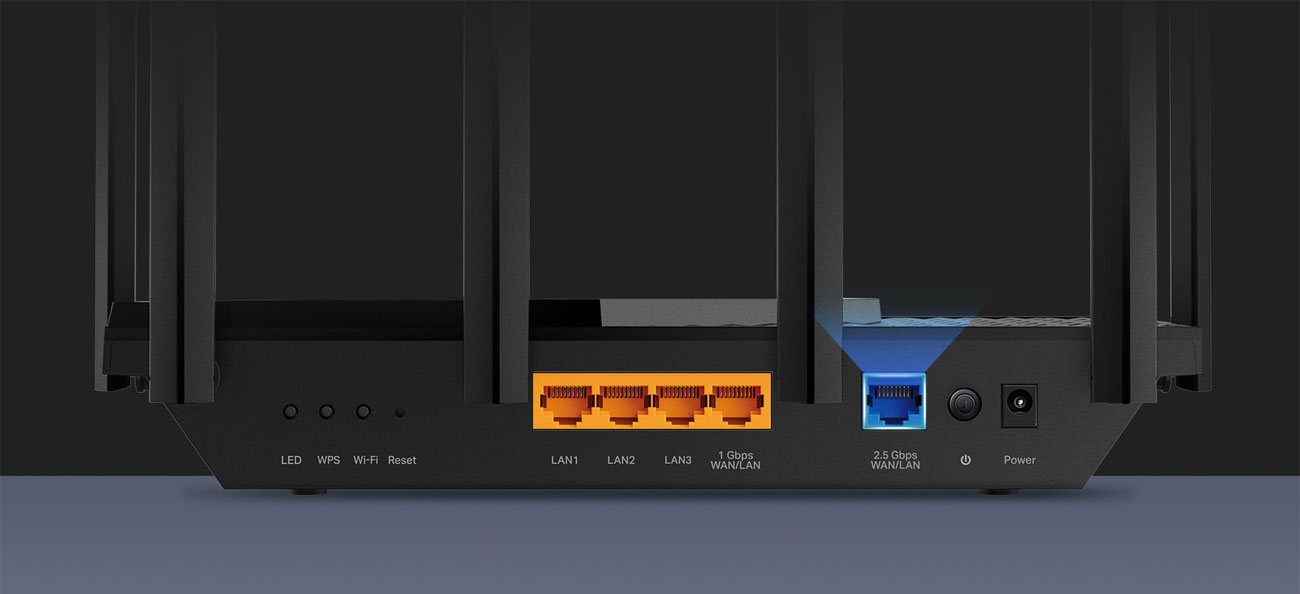 Neben atemberaubenden WLAN-Geschwindigkeiten bietet der Archer AX72 Pro auch sehr schnelle kabelgebundene Verbindungen. Ein 2,5-Gigabit-Port und ein 1-Gigabit-Port können die von deinem Internetanbieter angebotenen Geschwindigkeiten voll ausnutzen. Überwinde die 1-Gb/s-Begrenzung und sorge dafür, dass deine Geräte mit maximaler Leistung arbeiten können. Die Unterstützung von WAN/LAN-Ports ermöglicht eine optimale Nutzung entsprechend den Anforderungen deines Netzwerks. Teile auch Dateien zwischen verbundenen Geräten, indem du eine externe Festplatte an den USB-Port anschließt. Du kannst sie sogar als persönlichen Cloud-Speicher einrichten und sicher von außen darauf zugreifen.