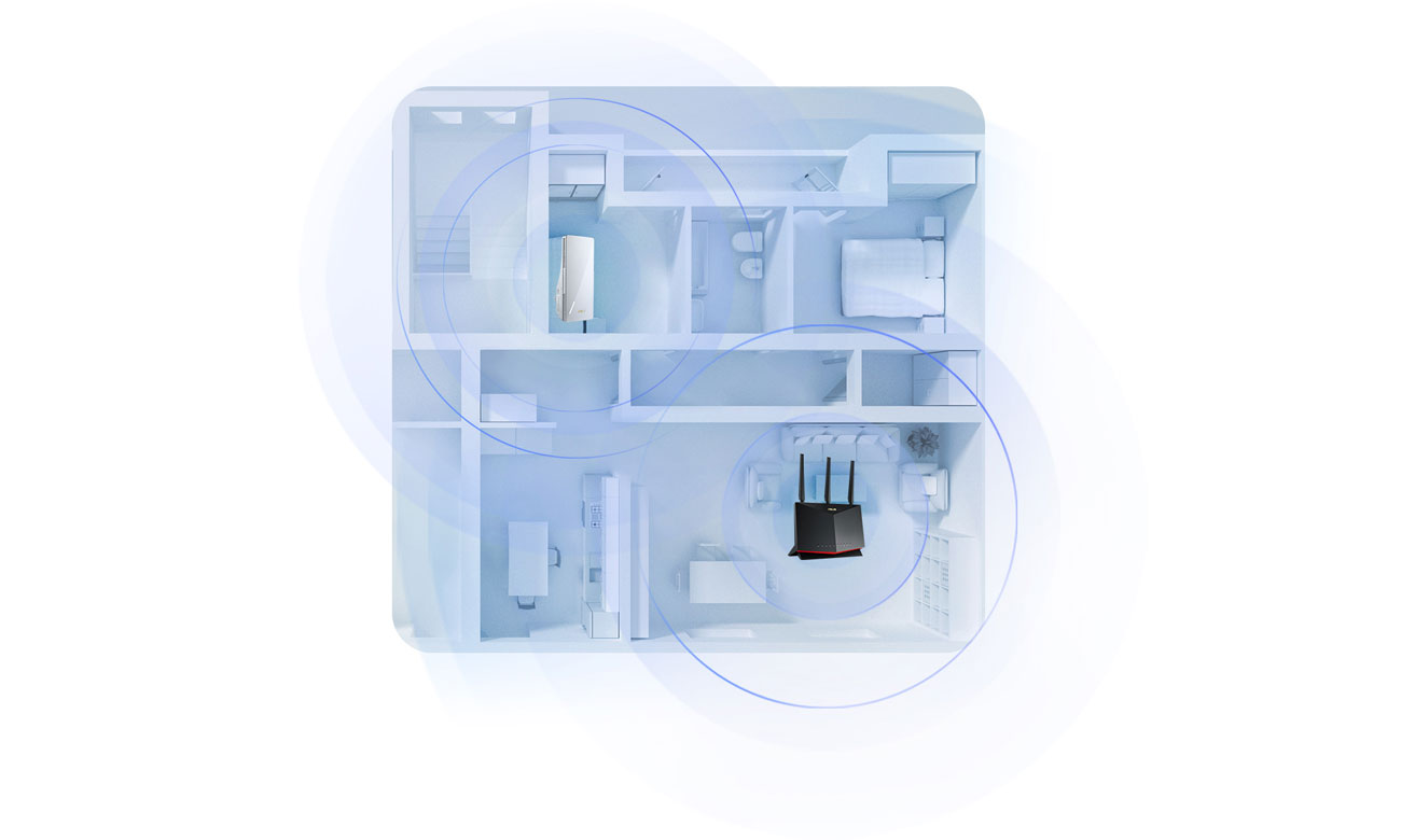 Genieße unübertroffene Wi-Fi-Verbindungsgeschwindigkeiten im ganzen Haus mit dem Dualband-Extender ASUS RP-AX58, der die Reichweite deines drahtlosen Netzwerks erweitert. Stelle dir überall, wo es zuvor nicht möglich war, eine Wi-Fi 6-Verbindung zur Verfügung. Die ASUS AiMesh-Technologie ermöglicht es dir, den RP-AX58 mühelos mit einem anderen AiMesh-kompatiblen Router zu verwenden, um die Netzwerkabdeckung zu erweitern. Du kannst auch alle Funktionen dieser verbundenen ASUS-Router im gesamten Mesh-Netzwerk nutzen. Zusätzlich kann der RP-AX58 mit einer breiten Palette anderer Wi-Fi-Router, Modems und Gateways zusammenarbeiten.
