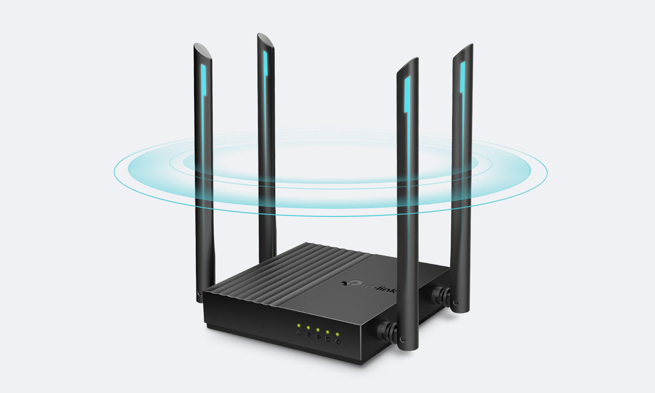 Die vier externen Hochleistungsantennen des Archer A64-Routers liefern Wi-Fi-Signal in jeden Winkel deines Hauses. Die Beamforming-Technologie ermöglicht die Erkennung von Geräten und sendet ein starkes Wi-Fi-Signal in ihre Richtung, auch wenn sie sich an einem entfernten Ort befinden. Dank der MU-MIMO-Technologie erhöht der Archer A64 die Effizienz der bereitgestellten Verbindungen und hilft Geräten, optimale Leistung zu erzielen. Geräte senden und empfangen Daten immer auf dem weniger belasteten Band zu einem bestimmten Zeitpunkt. Unterbrechungsfreie Unterhaltung auf allen Geräten wird Realität.
