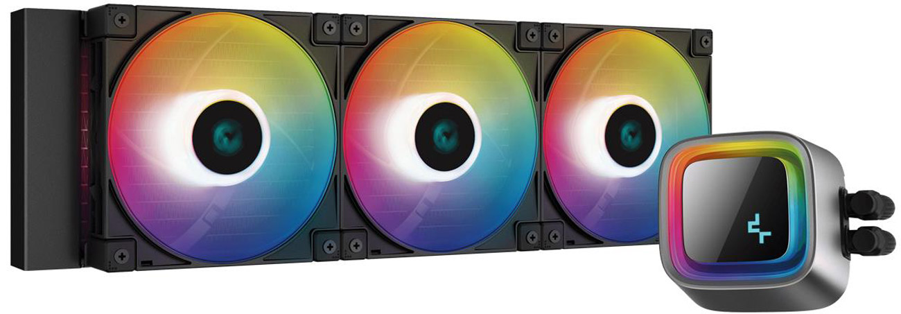 Der Deepcool LS720 ist ein Prozessorkühler, der hochwertige Flüssigkeitskühlung bietet. Es minimiert hohe Temperaturen im Gehäuse bei gleichzeitig geringem Geräuschpegel. Mit einem 360-mm-Radiator, drei FC120 A-RGB PWM-Lüftern und dem Infinity Mirror-Design garantiert es nicht nur effiziente Kühlung, sondern auch ein hervorragendes Aussehen.
