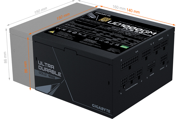 Das Gigabyte UD1000GM PG5 1000W Netzteil ist mit umfangreichen Schutzfunktionen ausgestattet, um einen sicheren und zuverlässigen Betrieb zu gewährleisten. Vor zu hohen Strömen (OCP), Überlastungen (OPP), Überhitzung (OTP), Überspannungen (OVP), Kurzschlüssen (SCP) und zu niedrigen Spannungen (UVP) ist das Netzteil durch entsprechende Schutzmechanismen abgesichert. Darüber hinaus sorgt der 120-mm-Lüfter für einen leisen Betrieb und eine effektive Kühlung, selbst unter hoher Belastung.