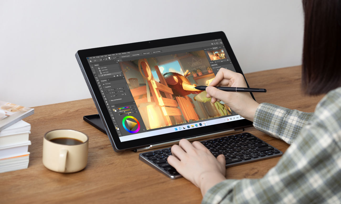 Indem es einen Laptop, ein Tablet und einen Stiftbildschirm kombiniert, kann das Kamvas Studio 16 als Computer zum Surfen im Internet und Spielen von Videospielen sowie als Tablet zum Anschauen von Filmen und Bearbeiten von Dokumenten verwendet werden. Es kann auch zum Zeichnen, Grafikdesign und Videobearbeitung als Stiftbildschirm genutzt werden. Arbeiten, spielen und kreieren – dieses tragbare 3-in-1-Gerät bietet mehr Möglichkeiten.