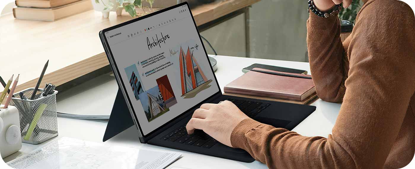 Egal, ob du dich für das Galaxy Tab S9, S9+ oder S9 Ultra entscheidest, jedes ist bereit, deine Kreativität zu unterstützen. Die Dynamic AMOLED 2X Technologie liefert unglaubliche Farbtiefen, und der Bildschirm ermüdet die Augen nicht dank der Reduzierung von blauem Licht. Die Details sind scharf und klar dank einer breiten Palette lebendiger Farben und echter Schwarztöne, ermöglicht durch die HDR10+ Technologie, die die Bildqualität verbessert. Das flüssige Scrollen mit einer Bildwiederholrate von bis zu 120Hz erhöht zusätzlich den Komfort. Dank der Vision Booster Funktion bleibt der Bildschirm auch bei hellem Licht klar. Ein intelligenter Algorithmus passt das Bild an die Außenhelligkeit an und optimiert Farben und Kontrast, egal ob du zu Hause oder unterwegs bist.