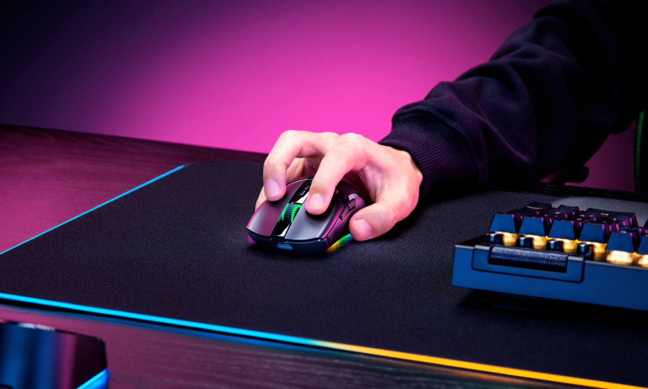 Passen Sie jede der 11 Zonen der Razer Cobra Pro Maus mit 16,8 Millionen Farben und unzähligen Lichteffekten an, um Ihrer Gaming-Ausrüstung ein einzigartiges Aussehen zu verleihen. Wichtig ist, dass Razer Chroma über 200 verschiedene Spiele unterstützt. Dadurch kann die Beleuchtung dynamisch reagieren, je nachdem, was Sie spielen. So erleben Sie eine noch größere Immersion in die Welt des Gamings.