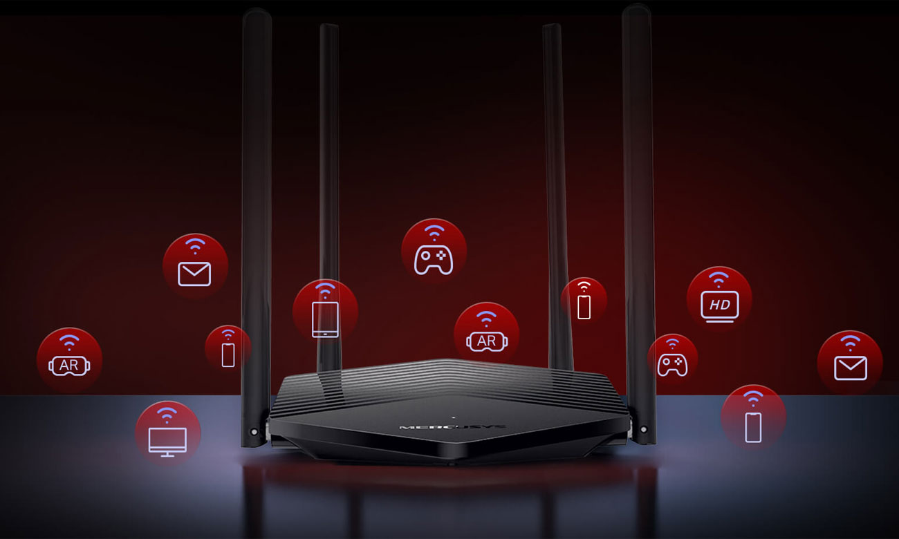 Der neueste Wi-Fi-6-Standard implementiert fortschrittliche Technologien, um eine größere Anzahl gleichzeitiger und stabiler Verbindungen, eine größere Wi-Fi-Reichweite und die Aufrechterhaltung schneller Datenübertragung zu gewährleisten. Dadurch kann der Mercusys MR60X-Router den hohen Anforderungen an die Leistung des drahtlosen Netzwerks gerecht werden. Der Wi-Fi-6-Standard erhöht zweifellos die Netzwerkperformance und schafft Platz für eine größere Anzahl von Geräten. Die Verwendung der OFDMA- und MU-MIMO-Technologien ermöglicht es dem MR60X-Router, eine viermal höhere Kapazität und Bandbreite in Umgebungen mit hohem Datenaufkommen im Vergleich zu Routern im AC-Standard zu erreichen, was bedeutet, dass eine größere Anzahl von Geräten angeschlossen werden kann.