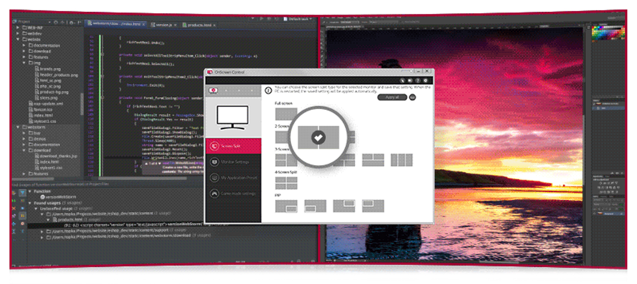 HDR-Technologie wird nun für verschiedene Inhalte verwendet. Der LG 34WR50QC-B Monitor entspricht dem Industriestandard HDR10, basierend auf 99% des sRGB-Farbraums, und unterstützt spezifische Farb- und Helligkeitsniveaus, die es den Zuschauern ermöglichen, dramatische Farben der Inhalte zu genießen. Zusätzlich ermöglicht die OnScreen Control Software die Steuerung verschiedener Anzeigeeinstellungen mit ein paar Mausklicks. Die Screen Split Funktion hilft dir, den gesamten Anzeigebereich mühelos zu teilen.