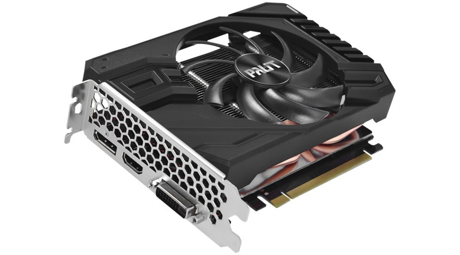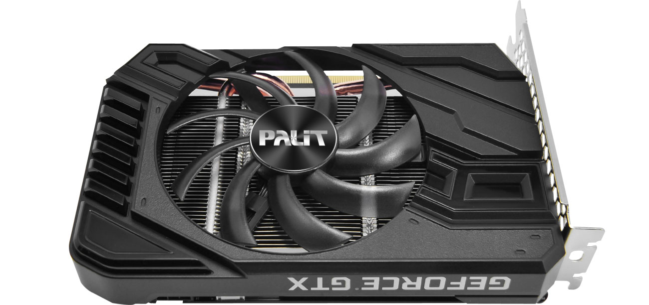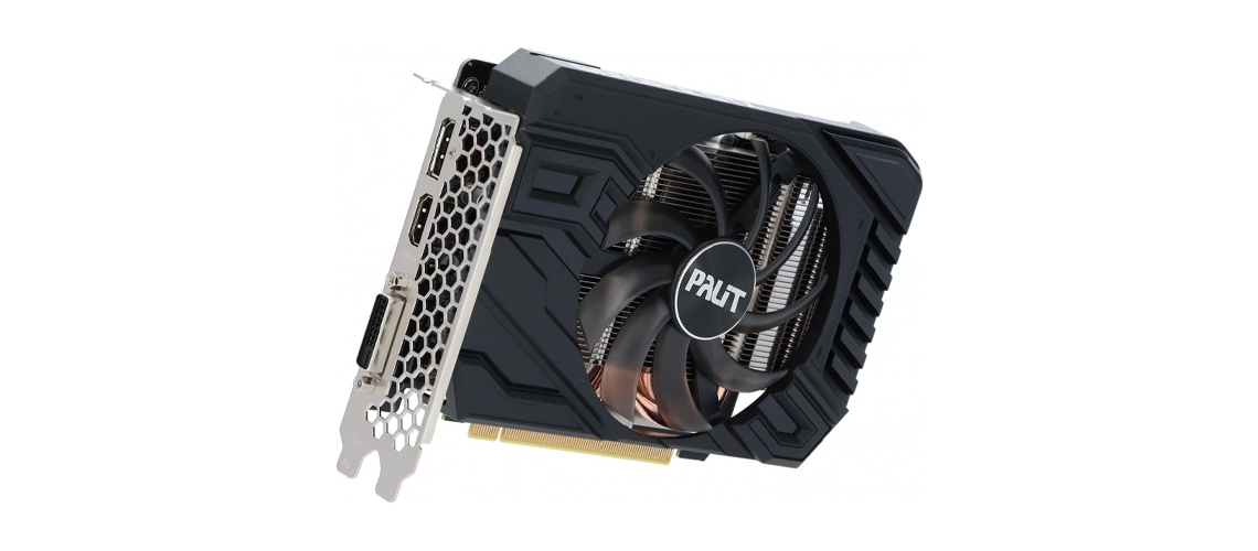 Zwei Kupfer-Heizrohre haften an der GPU-Oberfläche und leiten die Wärme schnell an den Aluminium-Kühlkörper ab. Dort wird es durch einen starken Luftstrom abgeführt, der von einem einzigen Ventilator erzeugt wird. Das Kühlsystem der Palit GeForce GTX 1660 Ti StormX sorgt trotz ihrer kompakten Größe dafür, dass sie auch bei hoher Belastung mit beispielloser Stabilität arbeitet.