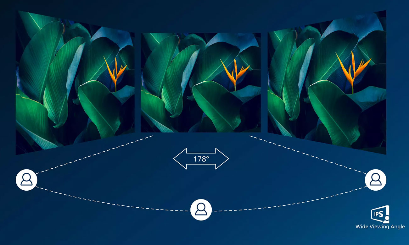 IPS-Monitore nutzen fortschrittliche Technologie, die einen sehr weiten Betrachtungswinkel von 178/178 Grad bietet, was das Betrachten des Bildschirms aus nahezu jedem Winkel ermöglicht. Im Gegensatz zu Standard-TN-Panels bieten IPS-Monitore ein extrem klares Bild und lebendige Farben. Sie eignen sich daher perfekt nicht nur für das Anzeigen von Fotos und Videos oder das Surfen im Internet, sondern auch hervorragend für professionelle Anwendungen, die Farbgenauigkeit und konstante Helligkeit erfordern. Die Full-HD-Auflösung sorgt für Klarheit der Details, was in Kombination mit hoher Helligkeit, unglaublichem Kontrast und natürlichen Farben dazu führt, dass das Bild durch seinen Realismus beeindruckt.
