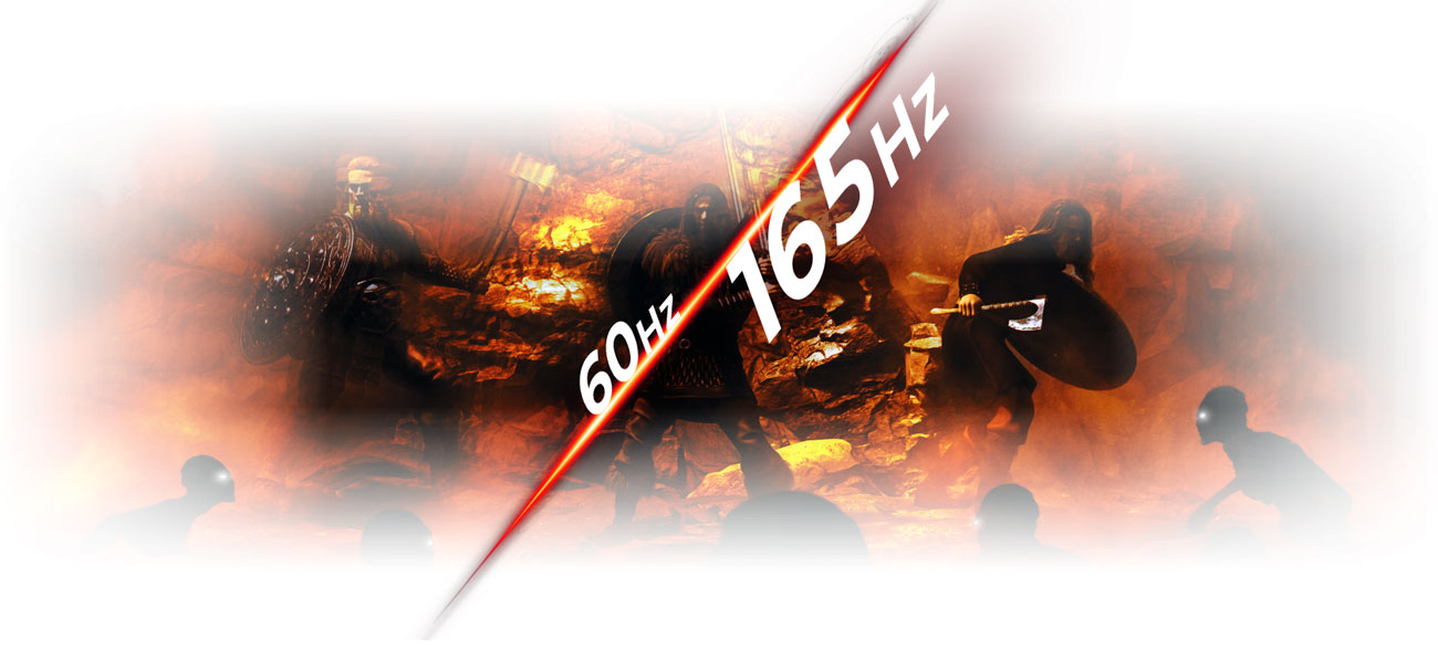 Eine Bildwiederholfrequenz von 165 Hz, die weit über den branchenüblichen 60 Hz liegt, macht Spiele extrem flüssig. Nutze das Potenzial deiner Grafikkarte voll aus. Vergiss Frame-Tearing und Bewegungsunschärfe. Fühle, wie dein Reflex mit der Aktion eins wird. Schau nie zurück.