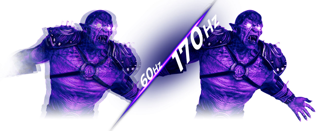 Eine Bildwiederholrate von 170 Hz, die deutlich über dem Branchenstandard von 60 Hz liegt, macht Spiele extrem flüssig. Nutze das Potenzial deiner Grafikkarte voll aus. Vergiss Frame-Tearing und Bewegungsunschärfe. Spüre, wie dein Reflex mit der Aktion eins wird. Blick niemals zurück. GtG steht für Grau-zu-Grau und gibt an, wie lange es dauert, bis ein Pixel von einem Grauton zum nächsten wechselt. In Spielen zählt jede Millisekunde, die darüber entscheiden kann, ob du einen erfolgreichen Schuss landest oder verfehlst. Eine kurze Reaktionszeit eliminiert auch den Ghosting-Effekt und die Bewegungsunschärfe.