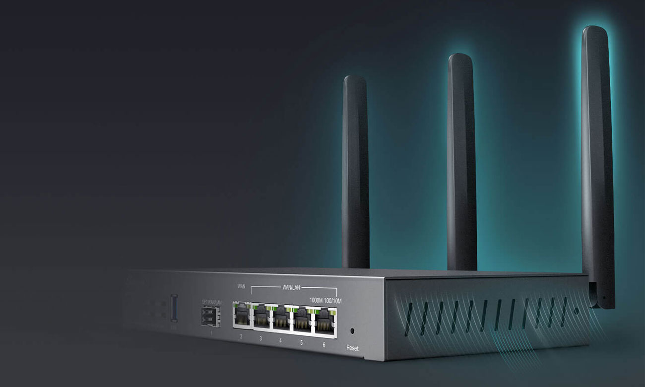 Die Unterstützung von bis zu 5 WAN-SFP- und RJ-45-Ports ermöglicht es dem Router, verschiedenen Anforderungen an den Internetzugang gerecht zu werden. Das Multi-WAN Load Balancing verteilt Datenströme basierend auf der Bandbreitenverhältnisse jedes WAN-Ports, um die Nutzung mehrerer Breitbandverbindungen zu maximieren. Schließe ein 4G/3G-Modem an den USB-3.0-Port an, um eine LTE-WAN-Backup-Verbindung herzustellen. Drei externe, abnehmbare Antennen bieten dem ER706W eine ausgezeichnete drahtlose Netzabdeckung, eine stabile Signalstärke und eine hohe Empfindlichkeit bei der Datenübertragung. Benutzer können den Antennenwinkel anpassen, um das Gerät an verschiedene Netzwerkbedingungen anzupassen. Der Router ER706W ist in ein Metallgehäuse eingebettet, um die Wärmeleitung und -abfuhr zu verbessern und somit die Gerätestabilität zu gewährleisten.