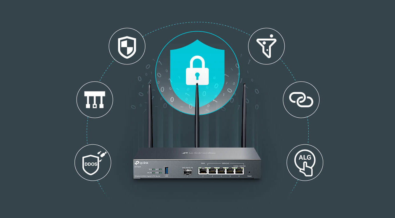 Bieten Sie wirksamen Schutz vor Viren und Eindringlingen. Erweiterte Firewall-Regeln bieten Schutz für das Netzwerk und die Daten. Erkenne automatisch und blockiere DoS-Angriffe wie TCP/UDP/ICMP Flooding, Ping of Death und andere Bedrohungen. Aktivieren Sie ALG mit einem Klick für Protokolle wie FTP, H323, SIP, IPsec und PPTP. Verwenden Sie statische IP-Adresszuweisungen, um Clients vor ARP-Spoofing-Angriffen zu schützen. Die VPN-Durchleitung und die Unterstützung mehrerer VPN-Protokolle wie IPSec/SSL/Wireguard/PPTP/L2TP VPN durch den Router ER706W bieten den Benutzern vielseitige Möglichkeiten. Die automatische IPSec-VPN-Einrichtung mit einem Klick vereinfacht die VPN-Konfiguration sowie das Netzwerkmanagement und die Bereitstellung. Der Router verfügt auch über einen integrierten Hardware-VPN-Engine, der die VPN-Leistung verbessert.