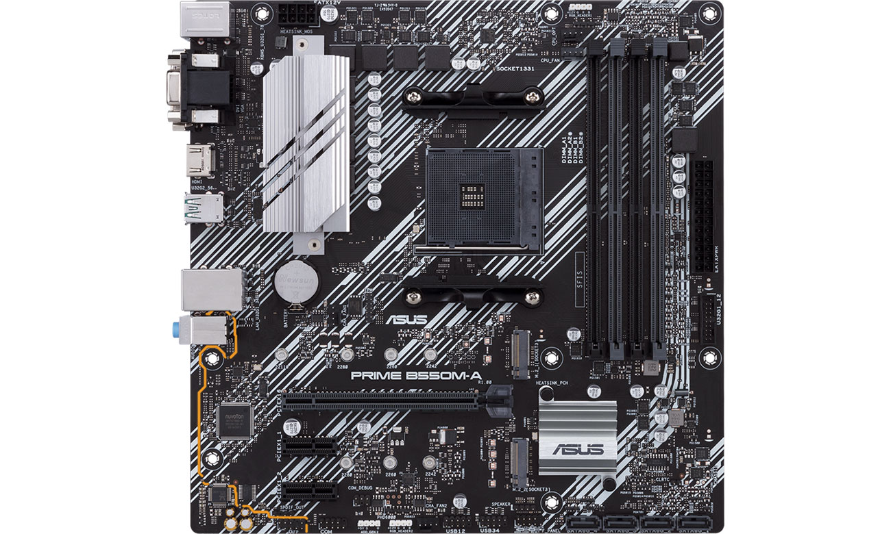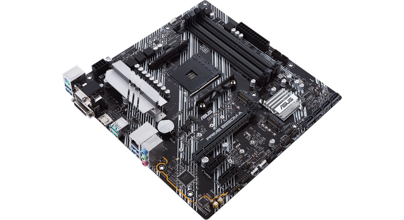 Die Stromversorgungssektion des ASUS PRIME B550M-A/CSM wird von einem Aluminiumkühlkörper gekühlt, der effizient Wärme von den Komponenten und MOSFETs abführt. Integrierte Temperatursensoren und DC/PWM Lüfteranschlüsse auf dem Mainboard ermöglichen eine einfache Verwaltung der Kühlung der gesamten Konfiguration. Das System Fan Xpert 2+ oder das UEFI BIOS ermöglichen dir volle Kontrolle über die Temperaturen des Computers. Der PCIe x16 Slot wurde mit zusätzlichen Lötpunkten verstärkt, um auch schwerere Grafikkarten zu unterstützen. Eine Reihe von Technologien schützt das Mainboard vor Schäden, einschließlich Schutz vor Überspannungen, Überstrom und Kurzschlüssen.