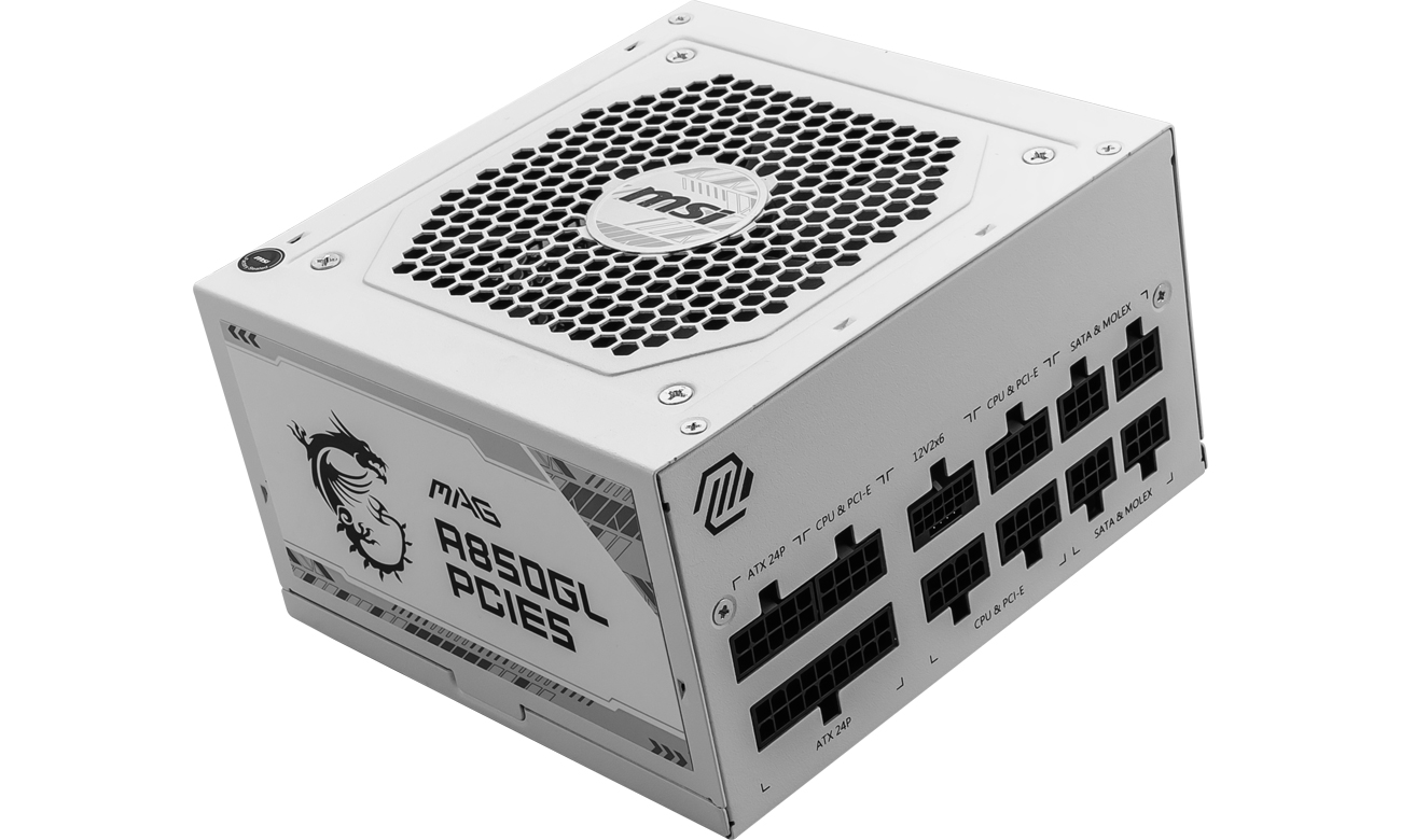 Das Netzteil aus der MAG A850GL PCIE5 WHITE Serie besticht durch seine hohe Energieeffizienz, bestätigt durch das 80 PLUS Gold Zertifikat, und seine Kompatibilität mit dem ATX 3.0 Standard sowie die problemlose Unterstützung von PCIe 5.0 Grafikkarten. Es wird gekühlt durch einen leisen 120-mm-Lüfter mit hydrodynamischem FDB (Fluid Dynamic Bearing) Lager. Dank der modularen DC-DC-Wandler, die in einer Vollbrückentopologie arbeiten, einer außerordentlich kompakten ATX-Gehäusegröße und einer vollständig modularen Konstruktion, ist dieses Netzteil ideal für Computer mit begrenztem Platzangebot, wo robuste, kompromisslose Leistung gefordert ist.