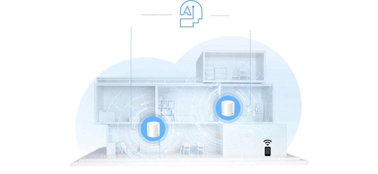 Die Geräte Deco X10 zielen darauf ab, die Kapazität und Leistung des Netzwerks in stark beanspruchten Umgebungen deutlich zu steigern. Unabhängig davon, wie viele Bildschirme und Geräte gleichzeitig verbunden sind, kann jeder von einem effizienten Netzwerk profitieren, das ein schnelleres Laden von Inhalten ermöglicht und keine Leistungseinbußen aufweist. Die bidirektionale MU-MIMO-Technologie ermöglicht es mehreren Geräten, gleichzeitig Daten zu empfangen, sodass dein Netzwerk mehr Geräte gleichzeitig bedienen, Puffer reduzieren und die Gesamtleistung steigern kann. Deco nutzt seine integrierten Algorithmen, um die Smarthome-Verbindungen in deinem Netzwerk zu automatisieren und so jederzeit das stärkste Signal zu gewährleisten.