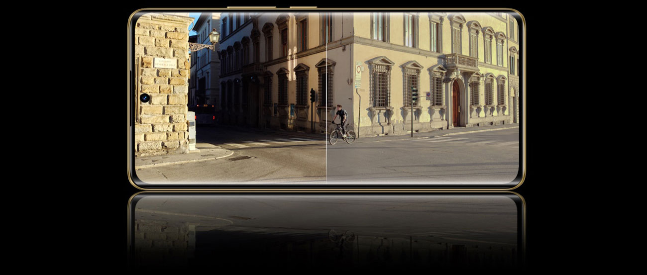 Tauche ein in die Welt der Fotografie und fühle dich wie ein echter Künstler. Mit drei Kameras auf der eleganten Insel bist du für jede Gelegenheit zum Fotografieren gerüstet. Du hast einen Hauptobjektiv, ein Ultraweitwinkelobjektiv und ein Teleobjektiv zur Verfügung. Jedes davon wird von fortschrittlichen Algorithmen unterstützt, die die Qualität deiner Aufnahmen noch weiter verbessern. Hierbei handelt es sich beispielsweise um den MasterShot-Algorithmus, die LightFusion- und Ultra HDR-Motoren, DIS und NightEye. Dank ihnen sehen deine Porträt-, Nacht-, beeindruckenden Nahaufnahmen oder Standardaufnahmen einfach fantastisch aus. Der Zoom in der Matrix und KI-Algorithmen ermöglichen es dir, entfernte Objekte wie den Mond am nächtlichen Himmel aufzunehmen.