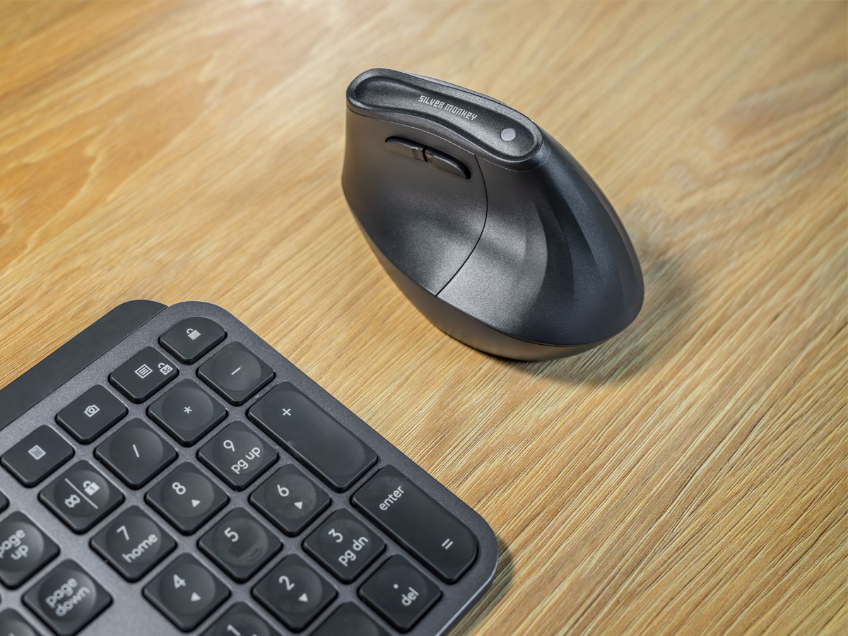 Die Silver Monkey Premium Ergonomic Wireless Comfort Mouse Silent ist eine Maus, die für höchsten Nutzungskomfort und präzises Arbeiten entwickelt wurde. Sie verfügt über leise Tasten, die den Lärm reduzieren und eine ruhige Arbeitsumgebung schaffen. Die 2,4-GHz- und Bluetooth-Konnektivität ermöglicht eine einfache und stabile Verbindung mit verschiedenen Geräten. Die ergonomische, vertikale Form der Maus unterstützt die natürliche Handhaltung und reduziert die Belastung des Handgelenks. Darüber hinaus bietet der breite DPI-Bereich von 800 bis 4000 volle Kontrolle über die Empfindlichkeit des Cursors.