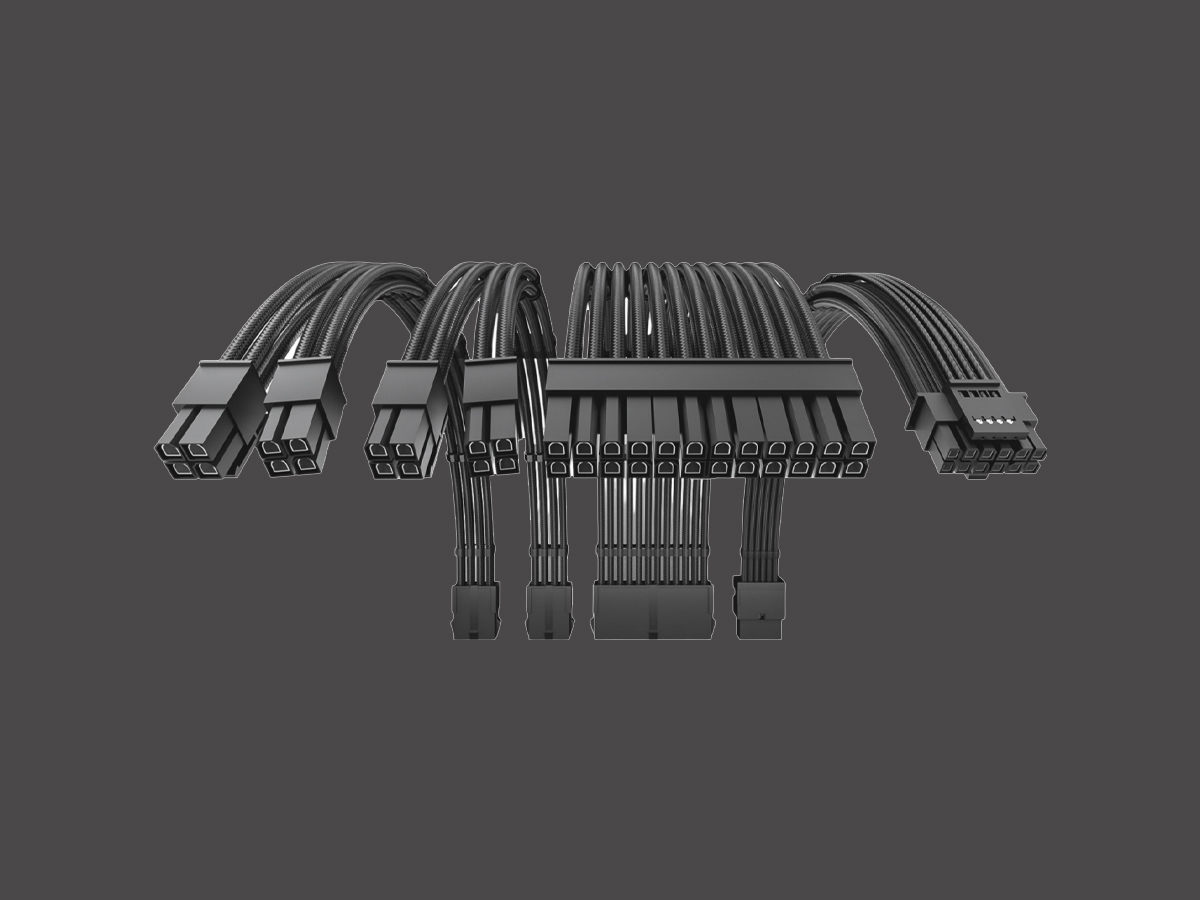 Verschiedene Kabel im Set und Kabelkämme ermöglichen ein bequemes Anschließen der Kabel an das Netzteil.