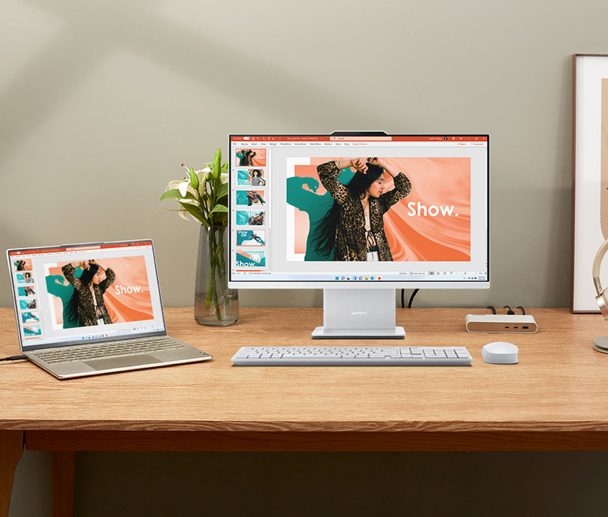 Schließen Sie alle notwendigen Geräte an. Vier USB-Ports, HDMI-Eingang und -Ausgang ermöglichen es, mühelos mehrere Geräte zu synchronisieren, aufzuladen und zu verbinden. Übertragen Sie Daten nahtlos und erweitern Sie Ihren Arbeitsbereich, indem Sie einen Laptop anschließen und das AIO als zusätzlichen Monitor für die Arbeit nutzen.