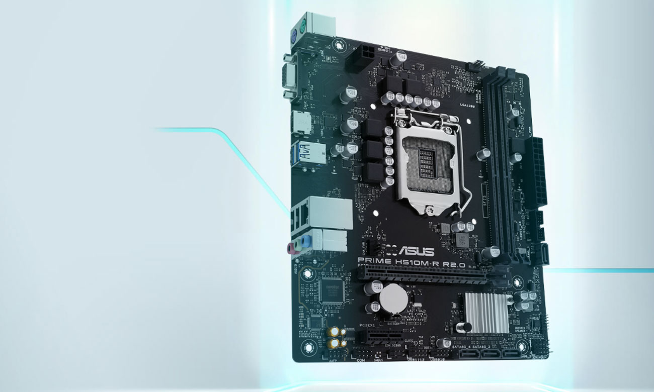 Der im ASUS PRIME H510M-R R2.0-SI Mainboard implementierte Audiocontroller sorgt für hochwertigen, störungsfreien Klang. Dazu trägt auch die Trennung des rechten und linken Kanals auf der Platine bei, was Übersprechen verhindert, sowie die Isolierung von analogen und digitalen Komponenten zur Minimierung von Störungen.