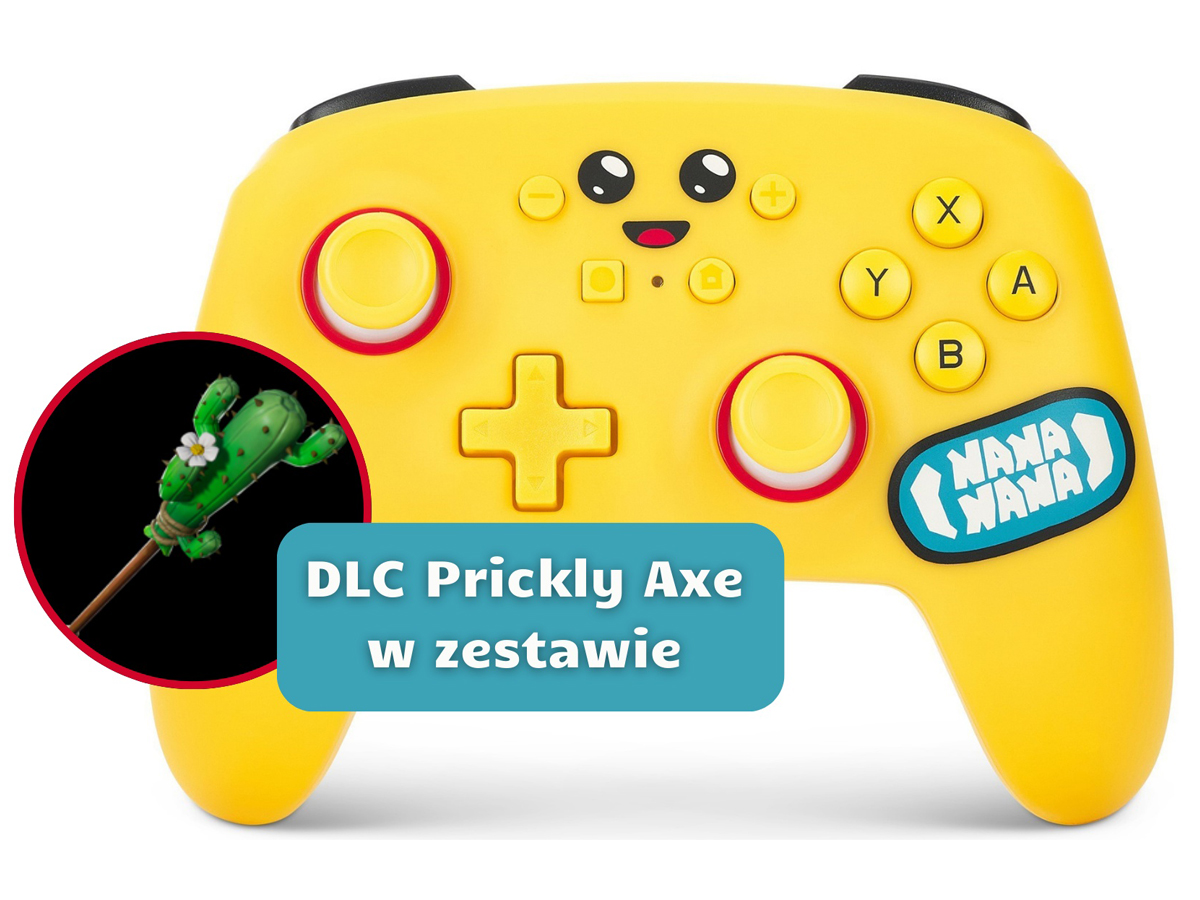 PowerA Enhanced Fortnite Peely enthält einen Code für einen seltenen Gegenstand in Fortnite – die Prickly Axe ist das perfekte Werkzeug zum Sammeln von Ressourcen, das nicht nur Strukturen zerstört, Holz, Stein und Metall sammelt, sondern vor allem niedlich aussieht. Im Set ist auch ein 3 Meter langes USB-C-Ladekabel enthalten.