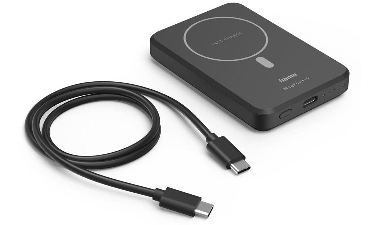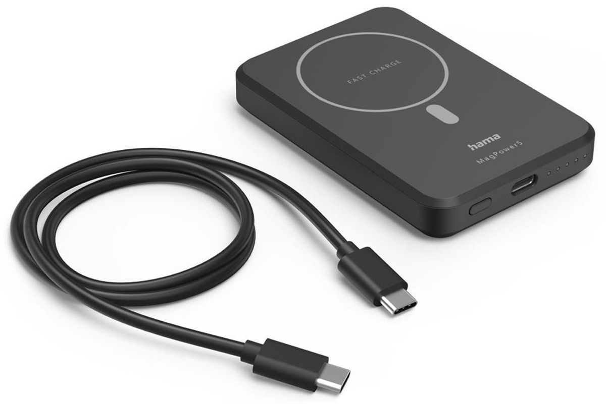 ist ein kompakter Powerbank, der kabelloses Laden ermöglicht. Er ist mit der MagSafe-Technologie kompatibel und kann daher Apple-Smartphones aufladen. Die Kapazität von 5.000 mAh garantiert mehrere zusätzliche Betriebsstunden. Im Set ist auch ein USB-C-Kabel enthalten, mit dem Sie den Powerbank problemlos aufladen können.