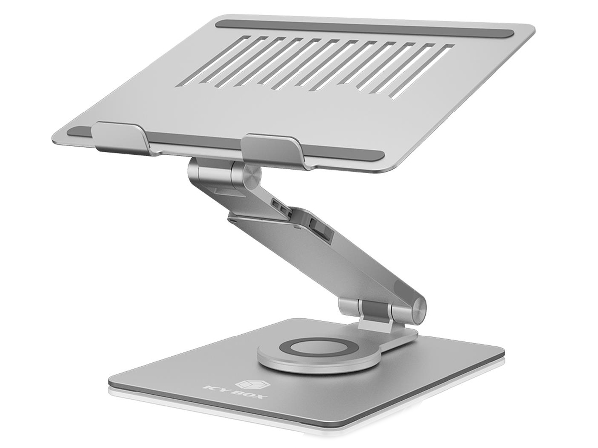 Der verstellbare Laptop-Ständer ICY BOX ermöglicht es Ihnen, den richtigen Winkel für Ihr Notebook zu finden. Das Zubehör kann um 360 Grad gedreht werden. Der Notebook-Halter selbst kann um 10 cm verlängert werden und unterstützt Notebooks mit einer Bildschirmdiagonale von bis zu 17 Zoll und einem maximalen Gewicht von 5 kg.