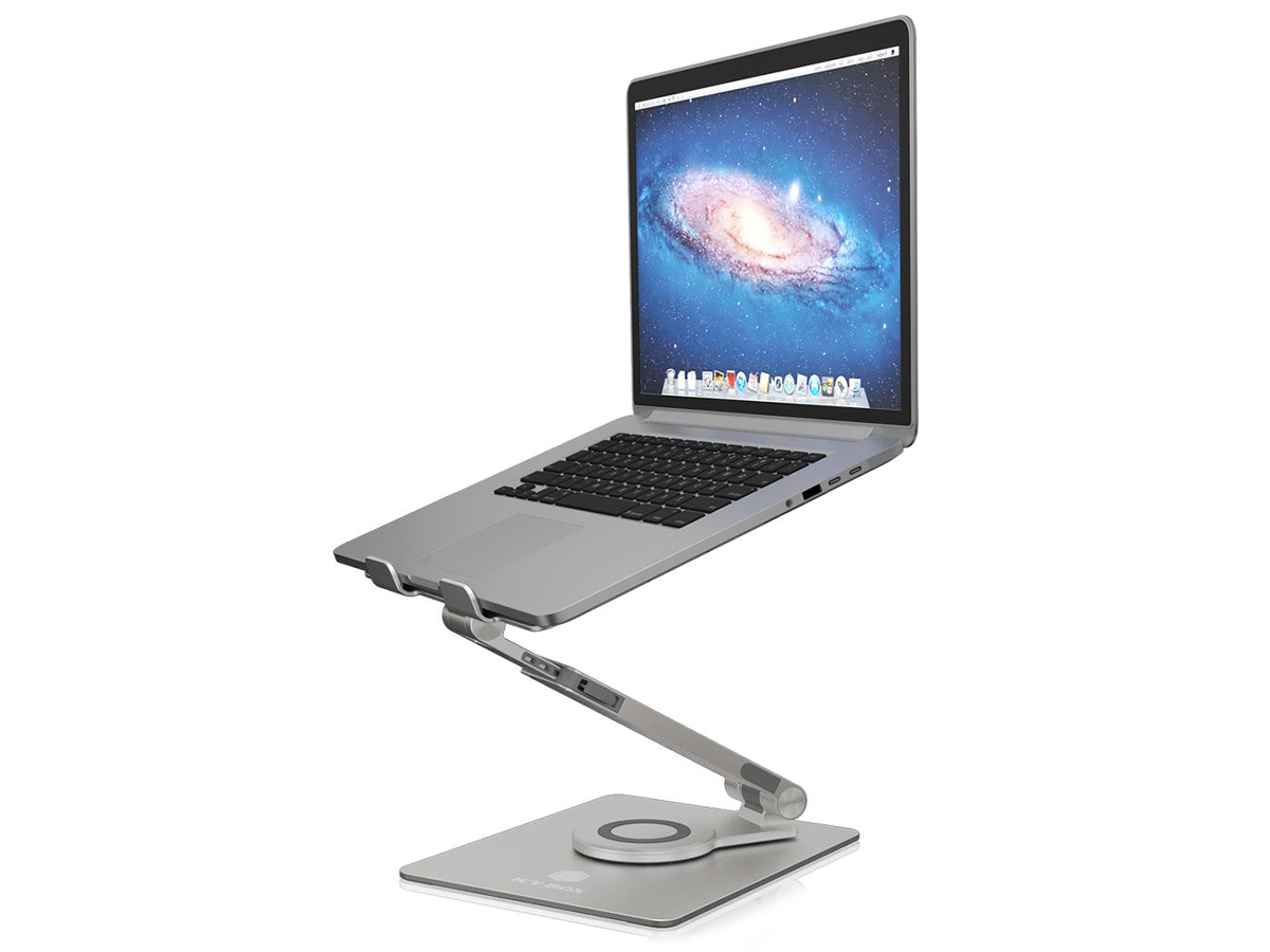 Der Notebook-Ständer ist aus hochwertigem Aluminium gefertigt und bietet dank präzise gearbeiteter Scharniere zuverlässige Stabilität und Qualität. Das Design ist elegant und schlicht und passt perfekt zur Einrichtung Ihres Arbeitsplatzes oder Schreibtisches zu Hause.