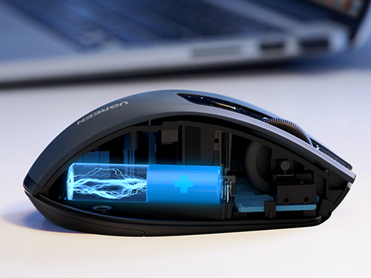 Zum Betrieb der Maus genügt eine AA-Batterie (nicht im Lieferumfang enthalten), die Sie problemlos in vielen Geschäften kaufen können. Keine Sorge vor einem schnellen Austausch! Das Gerät zeichnet sich durch eine überraschend lange Betriebszeit aus. Es kann Ihnen bis zu 18 Monate dienen, bevor Sie eine neue Batterie kaufen müssen. Um Energie zu sparen, wechselt die Maus nach einer gewissen Inaktivität automatisch in den Schlafmodus.