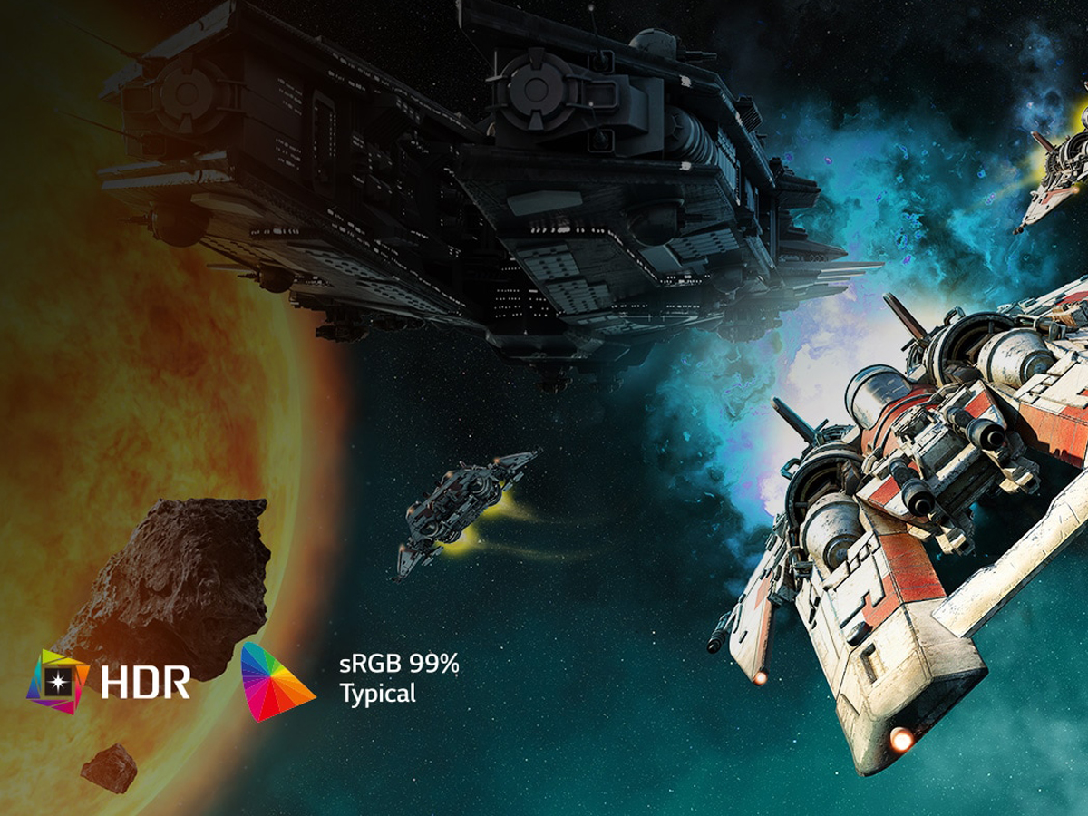 Dieser Monitor unterstützt eine breite Farbpalette, sRGB 99% (typ.) und HDR10. Das bedeutet, dass er Farben mit hoher Genauigkeit wiedergibt. Dadurch können Sie die hervorragenden Farben sehen, die die Spielentwickler beabsichtigt haben, unabhängig vom Schlachtfeld.