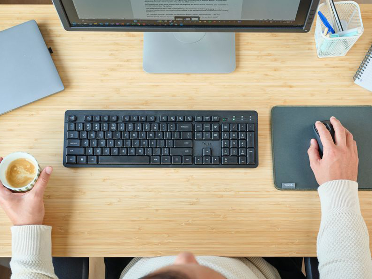 Die Tastatur im Trust Ody II Set ist mehr als nur ein Schreibwerkzeug. Sie verfügt über leicht zugängliche Multimedia-Tasten und Schnellzugriffsfunktionen, die es ermöglichen, die wichtigsten Funktionen mit einem einzigen Tastendruck zu steuern. Zusätzlich ist sie mit einem praktischen Ein-/Ausschalter ausgestattet, der hilft, die Batterie zu schonen. Diese Tastatur bewährt sich bei jeder Aufgabe - sie maximiert Ihre Arbeitsleistung und sorgt für Benutzerkomfort.