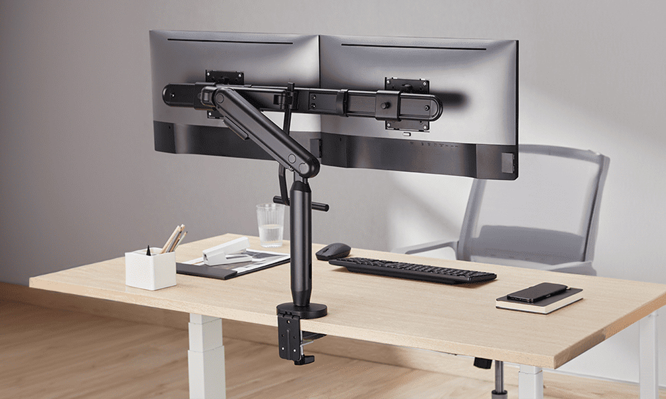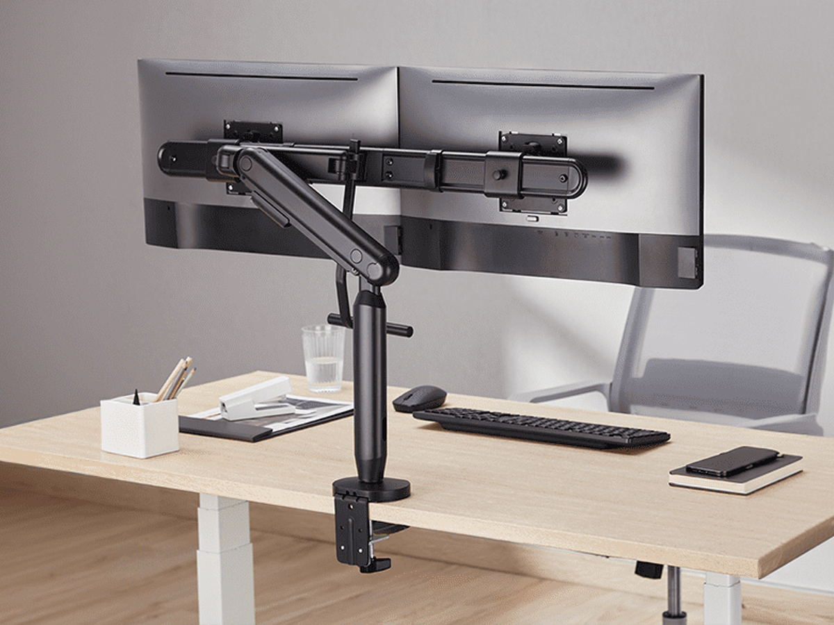Heutzutage ist die Arbeit am Computer nichts Neues. Viele von uns verbringen viele Stunden pro Tag vor Monitoren. Um den Arbeitskomfort zu maximieren, entscheiden sich immer mehr Menschen für einen Arbeitsplatz mit zwei Monitoren. Doch zwei Monitore auf dem Schreibtisch würden viel Arbeitsfläche beanspruchen. Die Lösung für dieses Problem bietet die Doppelmonitorhalterung Spacetronik SPAI120. Montiere problemlos zwei Monitore am Schreibtisch, sodass sie keinen wertvollen Platz auf der Arbeitsfläche beanspruchen.