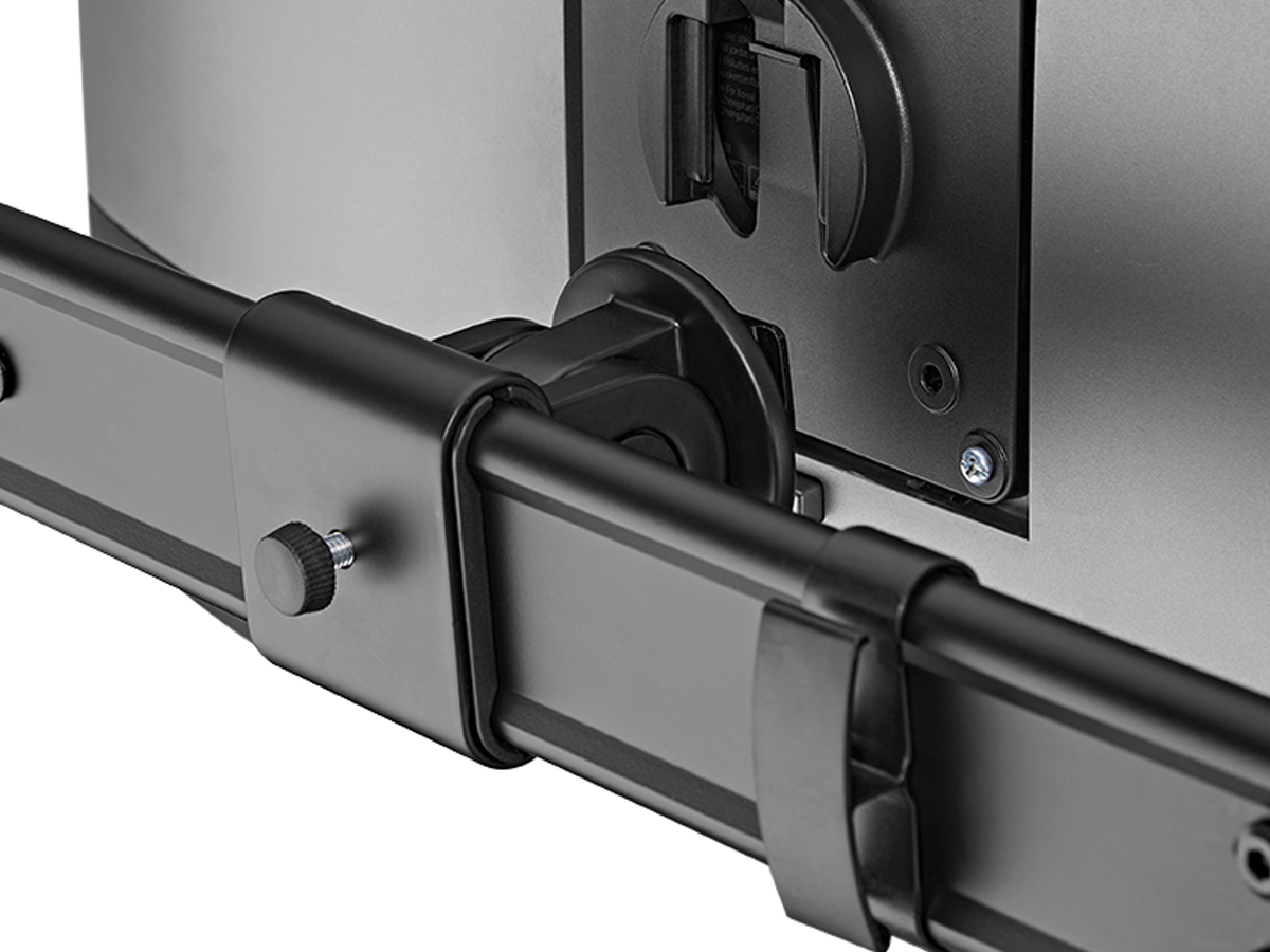 Die Halterung Spacetronik SPAI120 besteht aus einer Kombination von Stahl, Aluminium und hochwertigem Kunststoff. Zusätzlich wurde sie mit einem Pulverbeschichtungsverfahren lackiert, das das Risiko von Korrosion verringert. Die Monitorhalterung hat die Abmessungen 822×622×656 mm und eine volle Armlänge von 483 mm. Sie lässt sich ganz einfach mit einer Durchschraubbefestigung oder einer Klemme am Schreibtisch montieren. Die empfohlene Tischstärke beträgt 10~80 mm für die Klemme und 10~35 mm für die Durchschraubbefestigung.