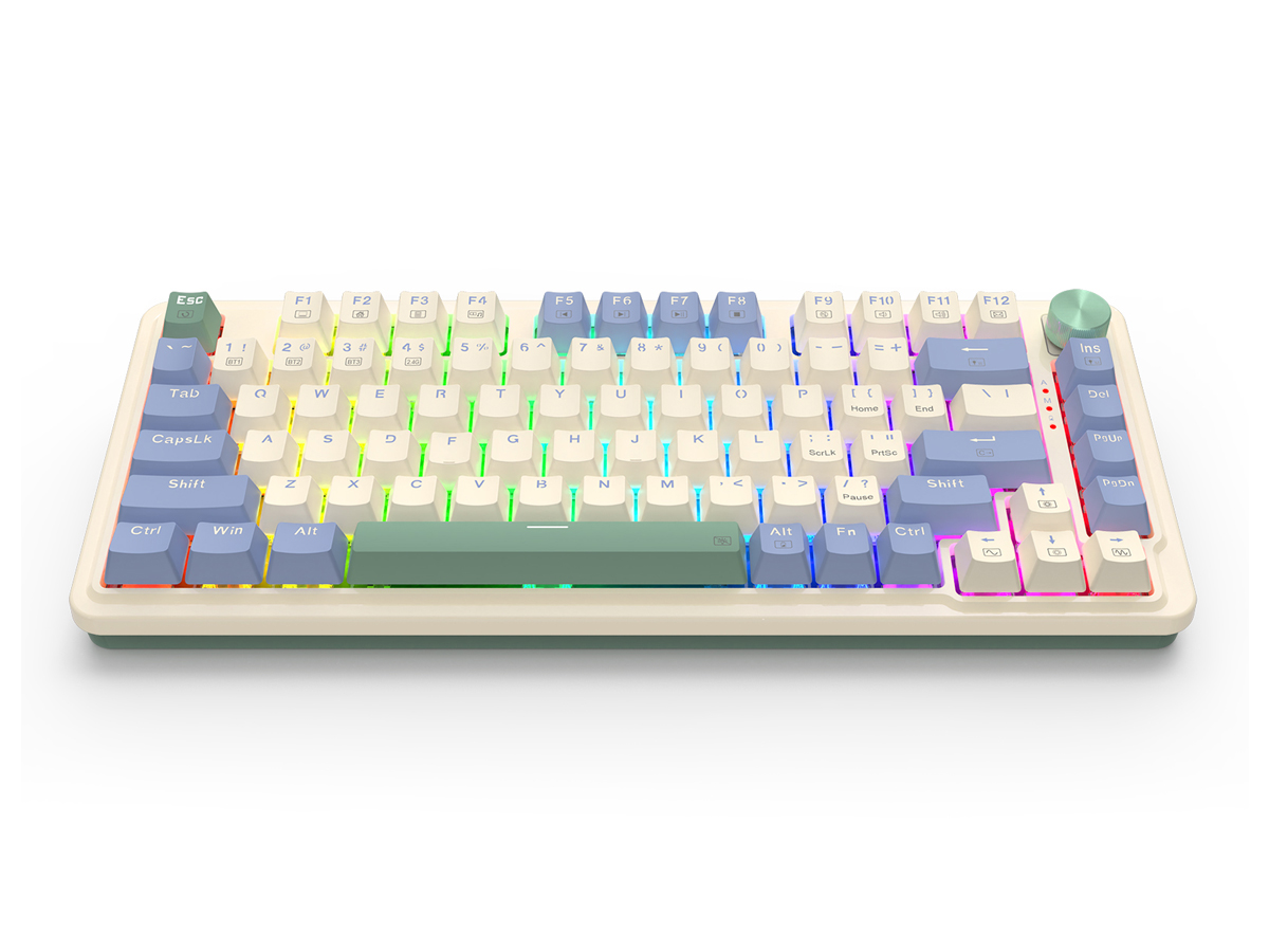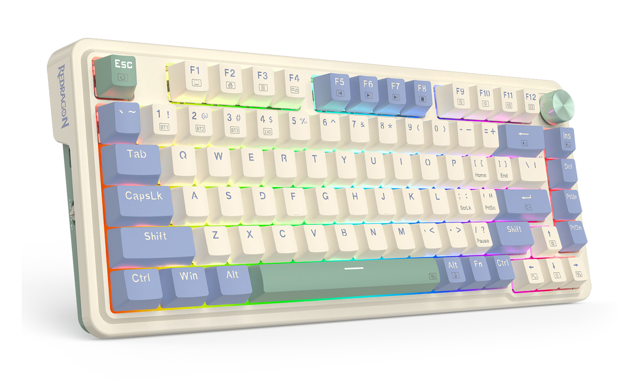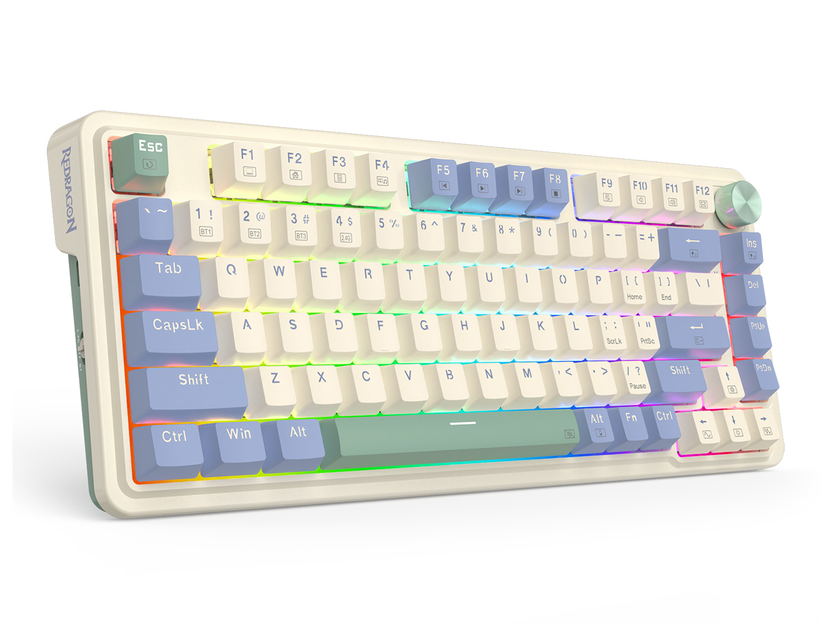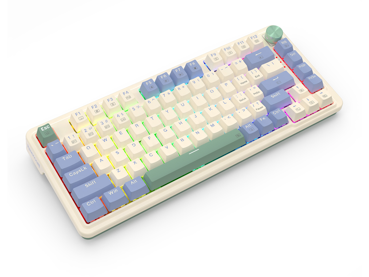 Die innovative Konstruktion der Redragon K673CPG-RGB-PRO Ucal Pro Tastatur kombiniert klassisches 75%-Design mit modernen Funktionen wie einem Multimedia-Drehknopf und Hot-Swap. Sie nutzt die Gasket-Mount-Technologie voll aus, und 81 langlebige Tasten aus PBT-Material bieten unvergleichliche Haltbarkeit.
