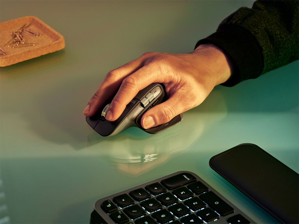 Schreiben Sie sicher und schnell mit den kugelförmigen Tasten, die sich an die Fingerkuppen anpassen. Diese Konstruktion minimiert das Risiko von Fehlern, und die erhöhte Tastenstabilität reduziert den Lärm. Wechseln Sie mühelos zwischen bis zu 3 Apple-Geräten mit nur einem Knopfdruck dank der Easy Switch-Funktion. Die MX Master 3S for Mac Maus ist mit dem bisher genauesten Sensor ausgestattet. Sie bietet Präzision und Reaktionsfähigkeit der neuen Generation. Der optische 8000 DPI-Sensor verfolgt Bewegungen praktisch überall – sogar auf Glas. Sie können die Bewegungsempfindlichkeit in Logi Options+ anpassen, um das Niveau zu erreichen, das Ihrem Arbeitsstil und der Monitorauflösung entspricht.