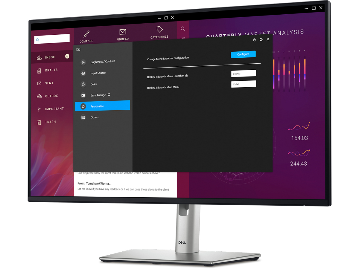 Organisierter Bildschirm dank der EasyArrange-Funktion und die Möglichkeit, Profile mit der EasyArrange Memory-Funktion zu speichern. Verwaltung von Monitoren mit umfassenden, automatisierten Funktionen, die mit vielen Tools kompatibel sind. Schneller Zugriff auf bevorzugte Optionen und Funktionen über Menüs und Tastenkombinationen.