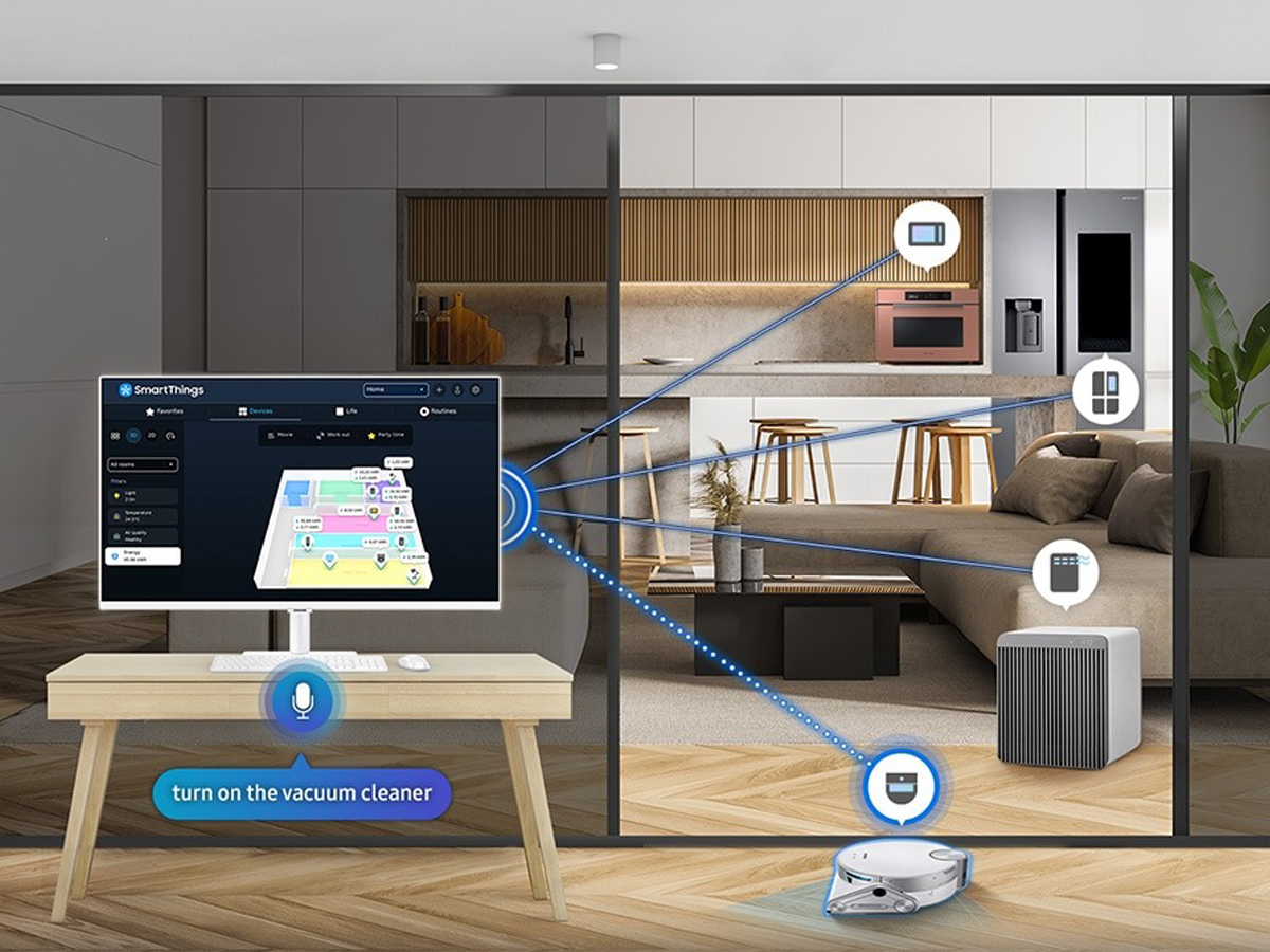 Sehen Sie alle intelligenten Geräte in Ihrem Zuhause in einer neuen 3D-Kartenansicht, um sie einfacher zu verwalten. Aktivieren Sie Energiesparmodi und überwachen Sie den Verbrauch, um Ihre Kosten zu optimieren. Verwenden Sie Ihr Mobiltelefon oder Ihre Stimme, um sich mit dem IoT-Hub zu verbinden - alles ohne Ihre Arbeit oder Ihren Lieblingsfilm zu unterbrechen.