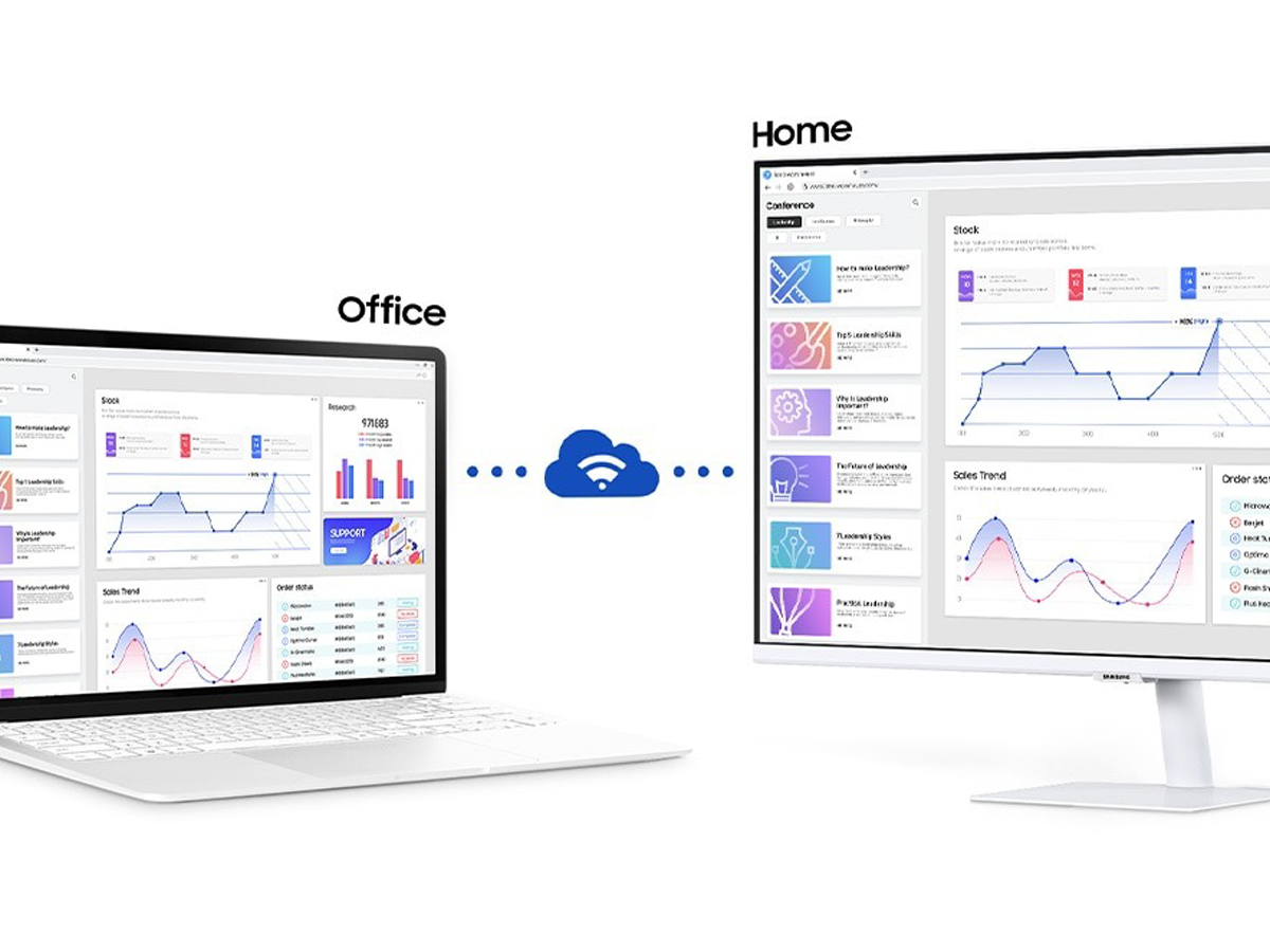 Sind Sie ein Multitasker? Mit der Steuerung mehrerer Geräte mit einer Maus und Tastatur werden Sie darin Meister. Ziehen Sie Inhalte nahtlos zwischen dem Smart Monitor, dem Galaxy Tab-Tablet und dem Galaxy-Mobilgerät hin und her. Erleben Sie, wie mühelos Arbeiten sein kann.