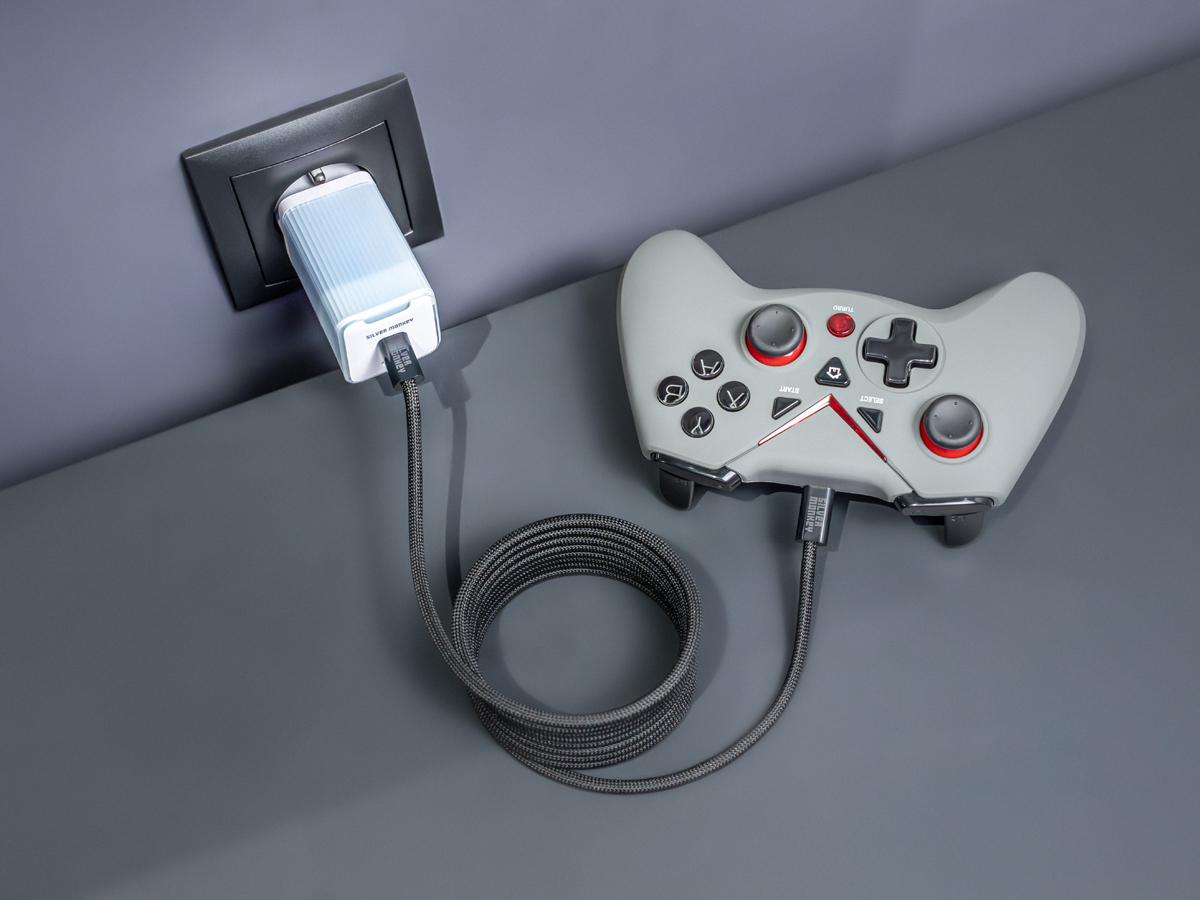 Zwei USB-C-Anschlüsse ermöglichen das gleichzeitige Laden von zwei Geräten und sparen wertvolle Zeit. Egal ob Smartphone oder Tablet – dank Power Delivery und Quick Charge 3.0 wird dein Gerät schnell und sicher geladen.